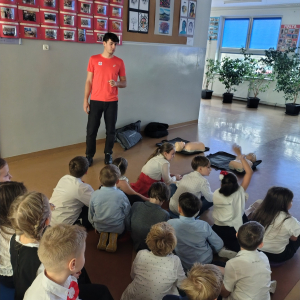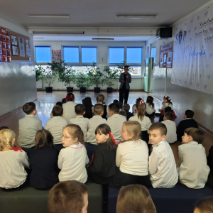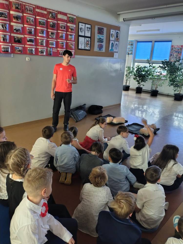 25 listopada 2025 r. w naszej szkole odbyło się szkolenie „ABC pływania – bezpieczeństwo nad wodą” skierowane do uczniów klas 2–3. Zajęcia miały charakter teoretyczny i zostały poprowadzone przez ratownika WOPR, Patryka Stefańskiego. Podczas spotkania uczniowie poznali podstawowe zasady bezpiecznego zachowania nad wodą, dowiedzieli się, jak unikać zagrożeń oraz jak reagować w sytuacjach wymagających pomocy. Szkolenie było wartościowym uzupełnieniem wiedzy o bezpieczeństwie i profilaktyce.