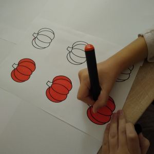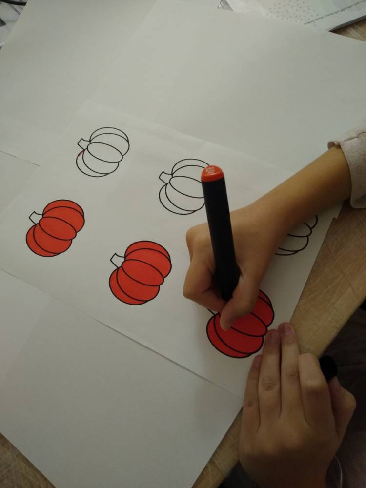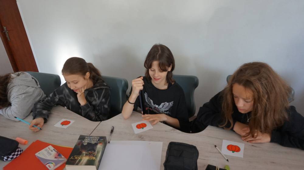 Podczas warsztatów dzieci tworzyły swoje własne dynie pełne dobra – ozdabiały je słowami pełnymi empatii, wsparcia i życzliwości.