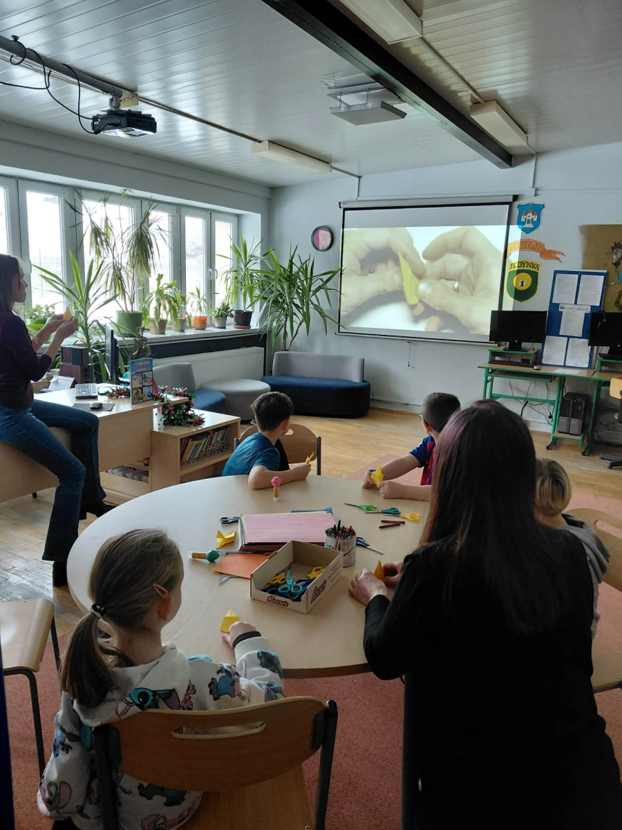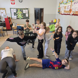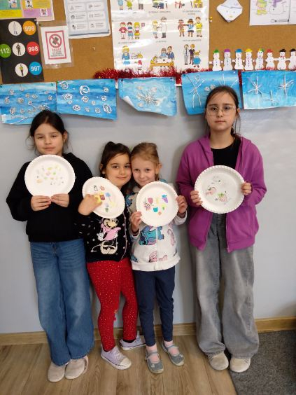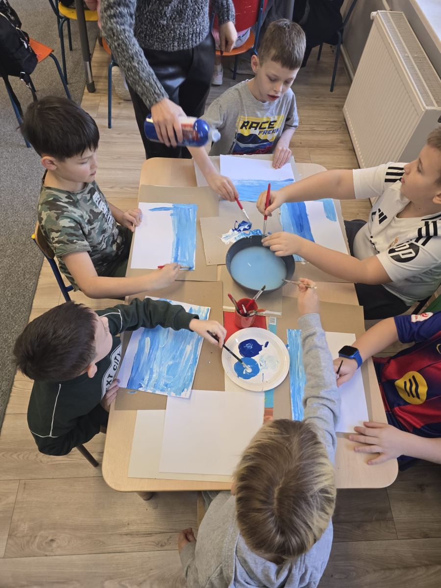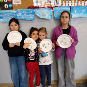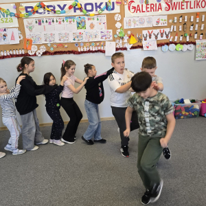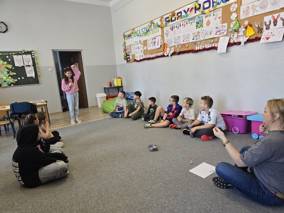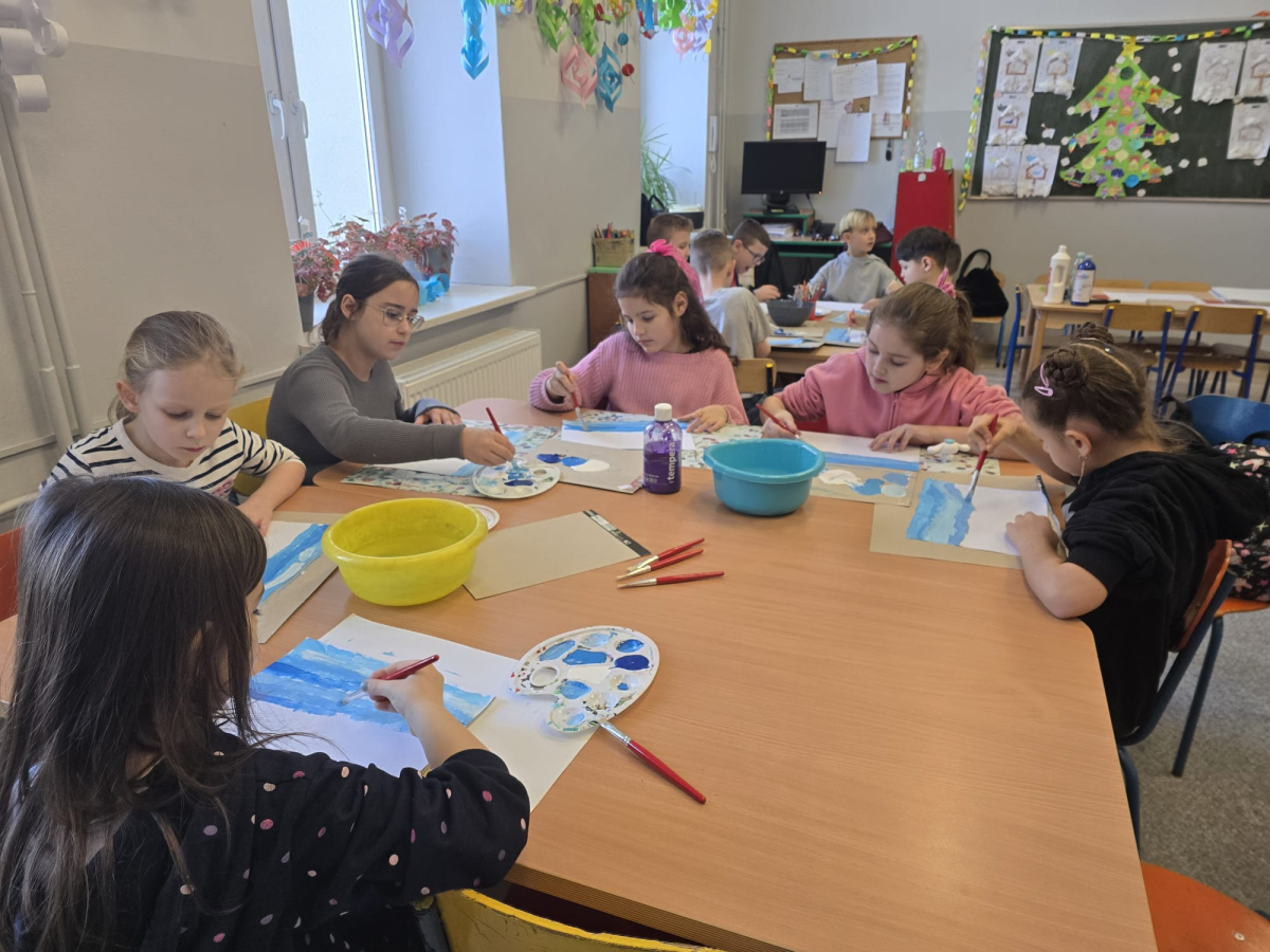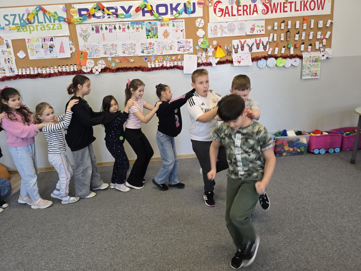 W pierwszym tygodniu ferii zimowych w naszej szkole odbywały się zajęcia feryjne, które dostarczyły uczniom wielu niezapomnianych wrażeń. Każdy dzień przynosił nowe atrakcje, a przygotowany program łączył naukę, zabawę, kreatywność oraz aktywność ruchową. Na początku dzieci uczestniczyły w zajęciach z zakresu pierwszej pomocy, podczas których poznały podstawowe zasady udzielania pomocy w nagłych sytuacjach. Dużym zainteresowaniem cieszyły się gry i zabawy ruchowe, które pozwalały rozładować energię i sprzyjały integracji grupy. Nie zabrakło działań rozwijających wyobraźnię i zainteresowania czytelnicze. Uczniowie wzięli udział w zajęciach Book Trailer- Doktor Dolittle. Kolejne dni upływały pod znakiem dobrej zabawy- były karaoke, zajęcia Magia dźwięków i kolorów, kalambury- gry bez prądu, które pokazały, że można świetnie bawić się bez użycia ekranów. Dużo radości sprawiły dzieciom warsztaty kulinarne Smacznie, zdrowo, kolorowo. Uczniowie przygotowywali szaszłyki i jeżyki owocowe oraz warzywne ludziki, ucząc się zasad zdrowego odżywiania w praktyczny i bardzo atrakcyjny sposób. Ważnym elementem ferii były zajęcia profilaktyczne. Dzieci wykonały "drzewko offline", na którym wykonały rysunki przedstawiające pomysły na spędzanie wolnego czasu bez gier i internetu. Zajęcia skłaniały do refleksji i rozmów o zdrowych nawykach. Nie zabrakło również zabaw i konkursów, quizów językowych oraz zajęć z zakresu Healty Lifestyle, które w przystępny sposób promowały zdrowy styl życia. Ogromne zainteresowanie wzbudziły warsztaty Magiczny świat chemii, podczas których uczniowie obserwowali różnorodne eksperymenty, odkrywając, że nauka może być prawdziwą przygodą. Dzieci brały także udział w warsztatch origami, które rozwijały cierpliwość, koncentrację i zdolności manualne.