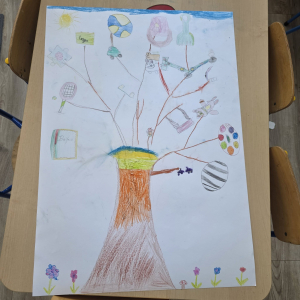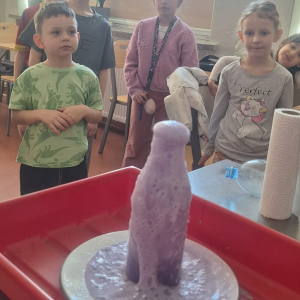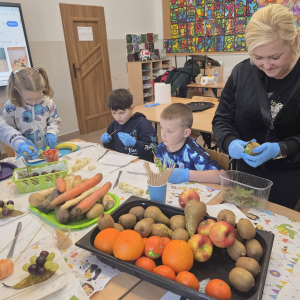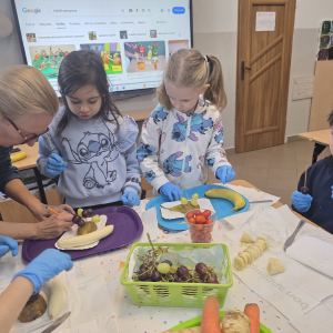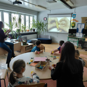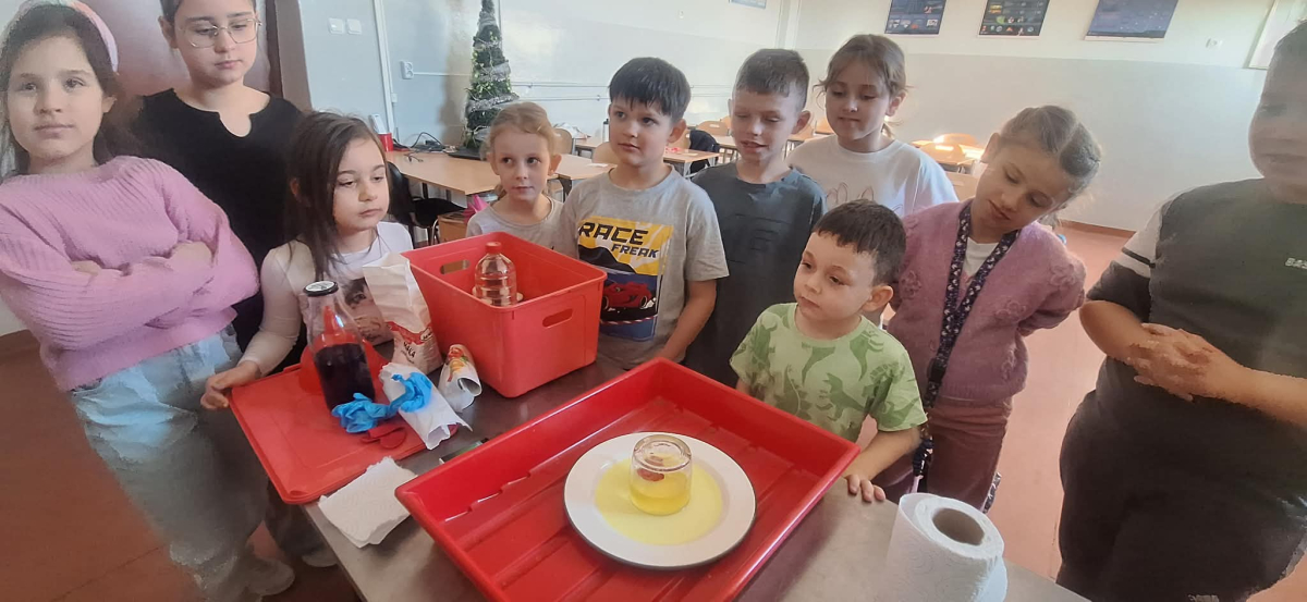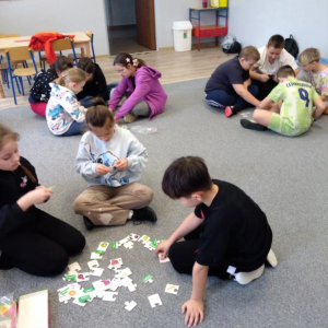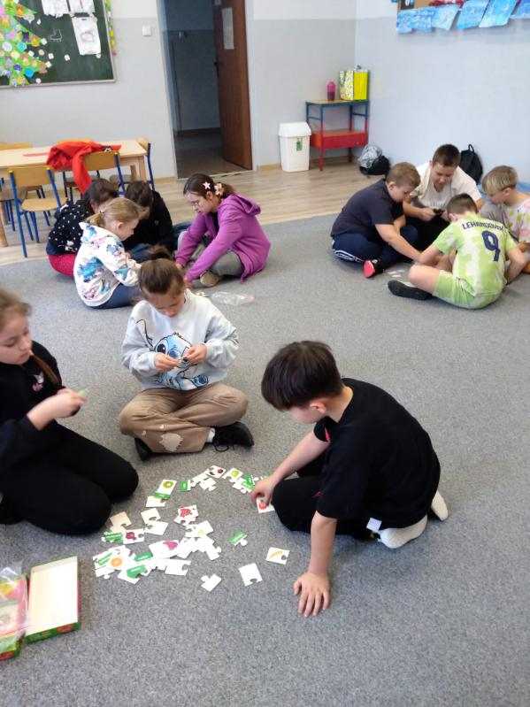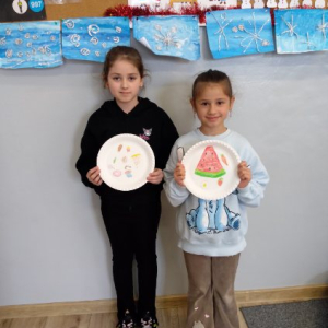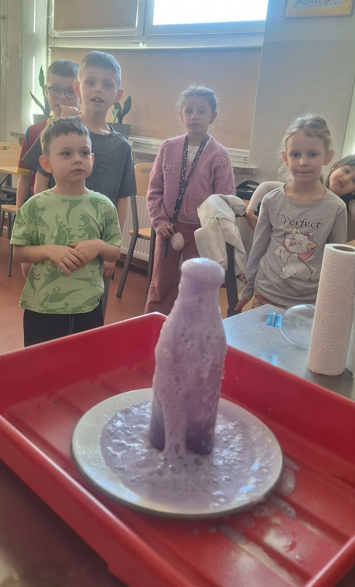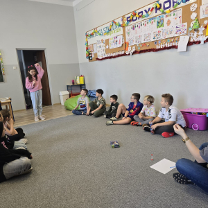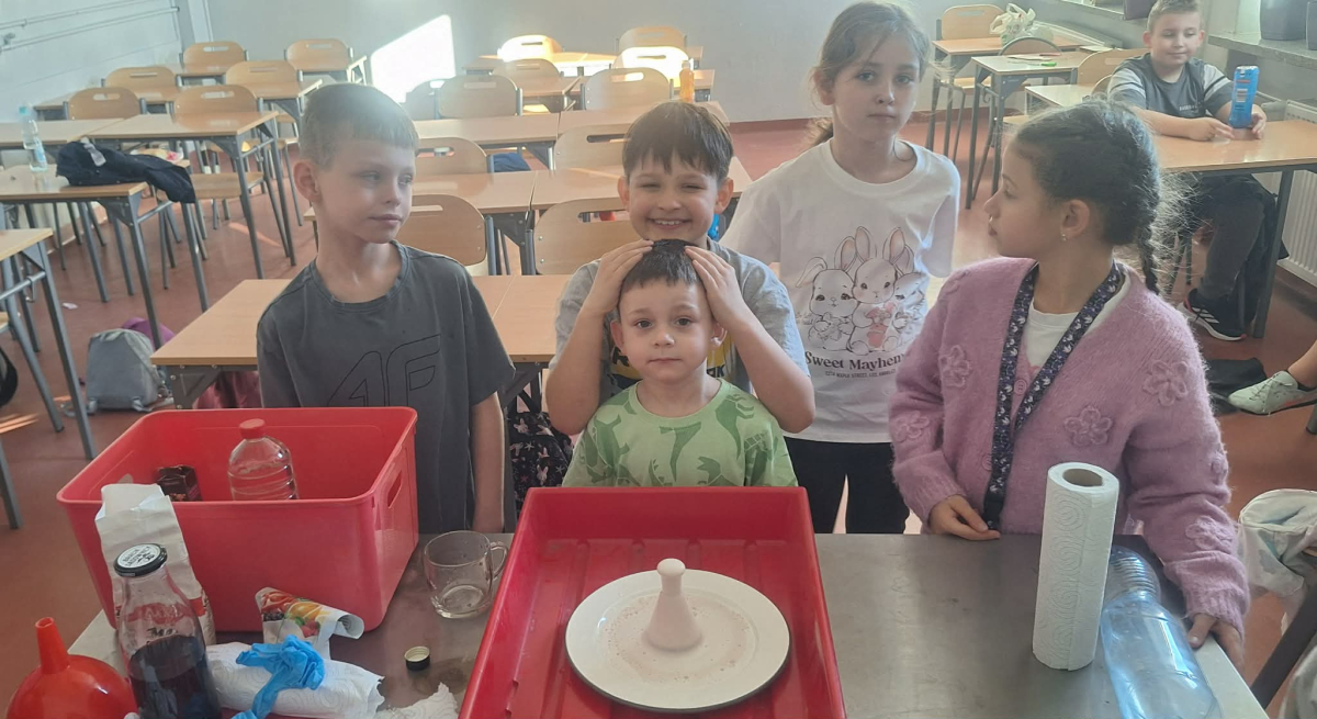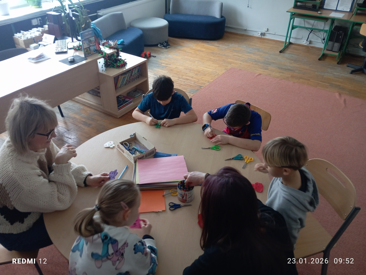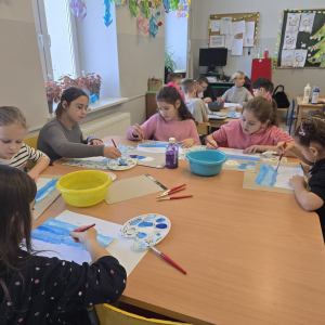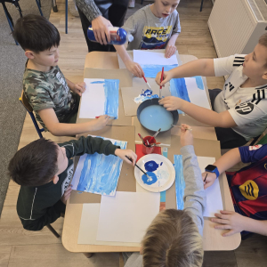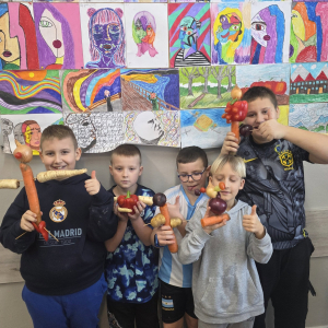 W pierwszym tygodniu ferii zimowych w naszej szkole odbywały się zajęcia feryjne, które dostarczyły uczniom wielu niezapomnianych wrażeń. Każdy dzień przynosił nowe atrakcje, a przygotowany program łączył naukę, zabawę, kreatywność oraz aktywność ruchową. Na początku dzieci uczestniczyły w zajęciach z zakresu pierwszej pomocy, podczas których poznały podstawowe zasady udzielania pomocy w nagłych sytuacjach. Dużym zainteresowaniem cieszyły się gry i zabawy ruchowe, które pozwalały rozładować energię i sprzyjały integracji grupy. Nie zabrakło działań rozwijających wyobraźnię i zainteresowania czytelnicze. Uczniowie wzięli udział w zajęciach Book Trailer- Doktor Dolittle. Kolejne dni upływały pod znakiem dobrej zabawy- były karaoke, zajęcia Magia dźwięków i kolorów, kalambury- gry bez prądu, które pokazały, że można świetnie bawić się bez użycia ekranów. Dużo radości sprawiły dzieciom warsztaty kulinarne Smacznie, zdrowo, kolorowo. Uczniowie przygotowywali szaszłyki i jeżyki owocowe oraz warzywne ludziki, ucząc się zasad zdrowego odżywiania w praktyczny i bardzo atrakcyjny sposób. Ważnym elementem ferii były zajęcia profilaktyczne. Dzieci wykonały "drzewko offline", na którym wykonały rysunki przedstawiające pomysły na spędzanie wolnego czasu bez gier i internetu. Zajęcia skłaniały do refleksji i rozmów o zdrowych nawykach. Nie zabrakło również zabaw i konkursów, quizów językowych oraz zajęć z zakresu Healty Lifestyle, które w przystępny sposób promowały zdrowy styl życia. Ogromne zainteresowanie wzbudziły warsztaty Magiczny świat chemii, podczas których uczniowie obserwowali różnorodne eksperymenty, odkrywając, że nauka może być prawdziwą przygodą. Dzieci brały także udział w warsztatch origami, które rozwijały cierpliwość, koncentrację i zdolności manualne.