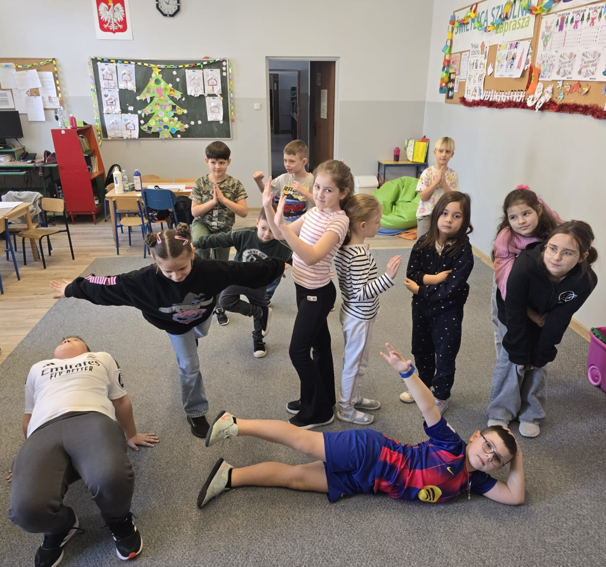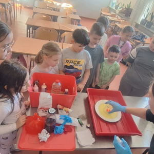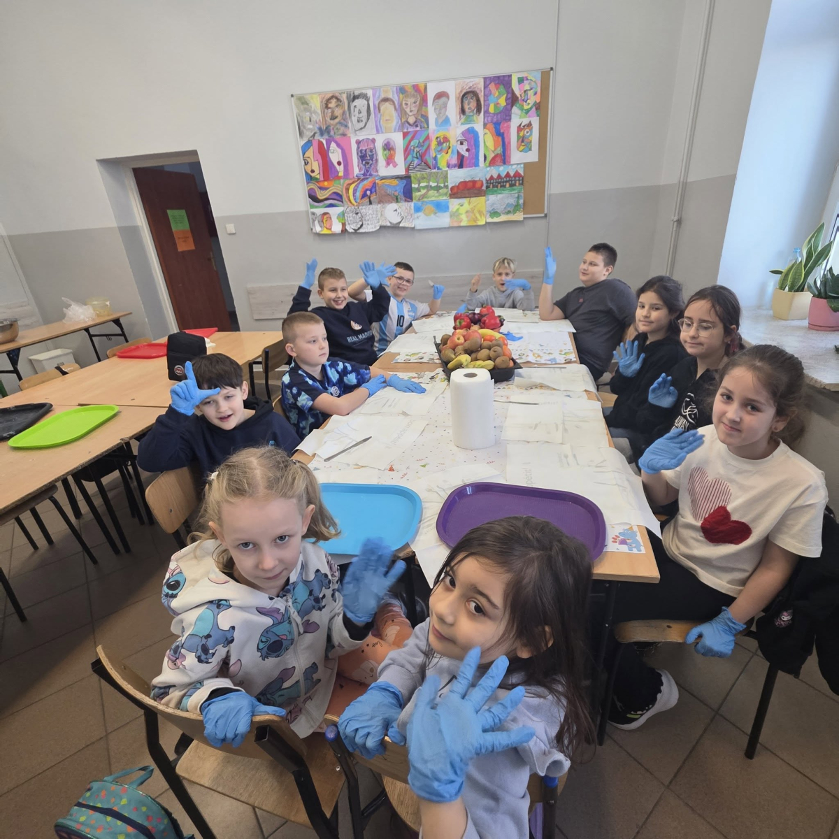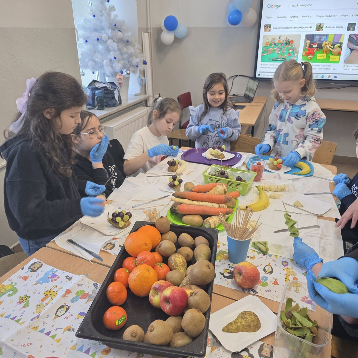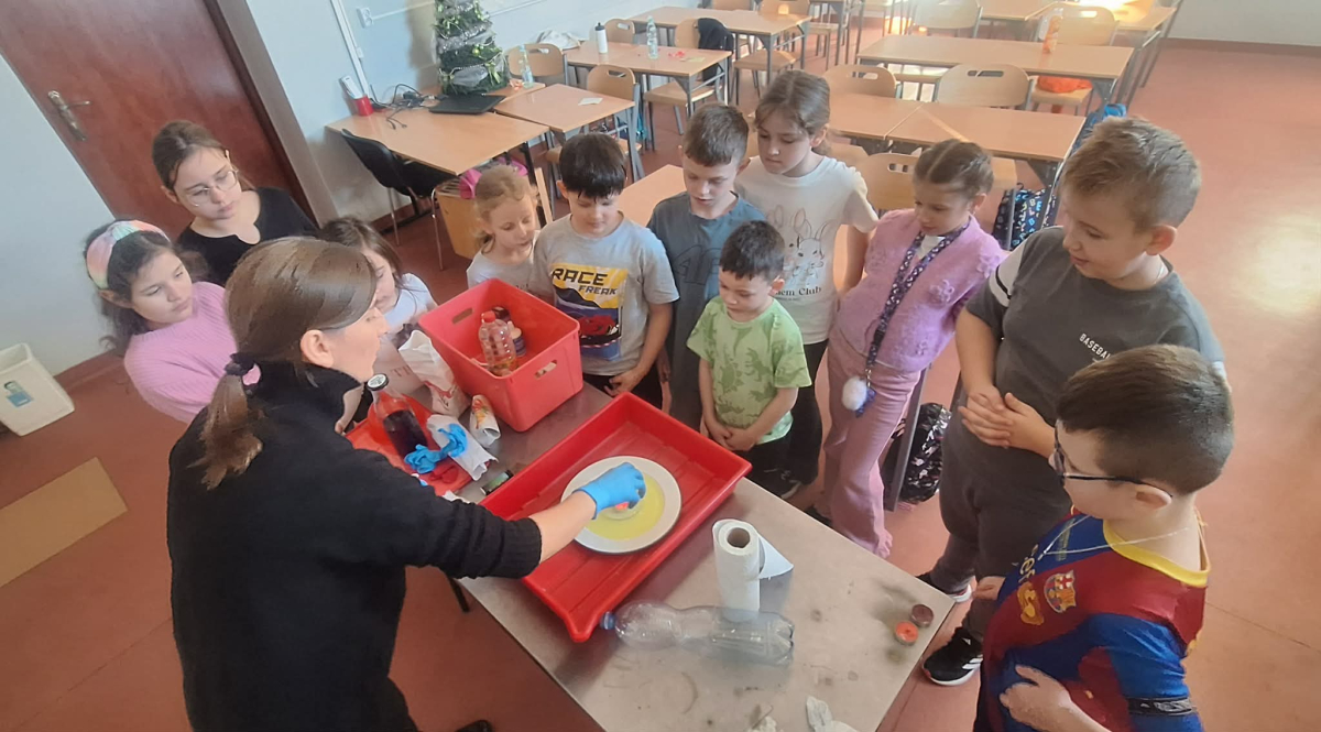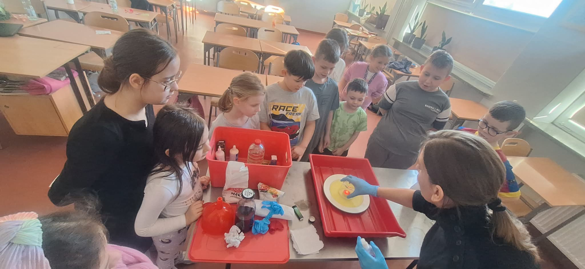 W pierwszym tygodniu ferii zimowych w naszej szkole odbywały się zajęcia feryjne, które dostarczyły uczniom wielu niezapomnianych wrażeń. Każdy dzień przynosił nowe atrakcje, a przygotowany program łączył naukę, zabawę, kreatywność oraz aktywność ruchową. Na początku dzieci uczestniczyły w zajęciach z zakresu pierwszej pomocy, podczas których poznały podstawowe zasady udzielania pomocy w nagłych sytuacjach. Dużym zainteresowaniem cieszyły się gry i zabawy ruchowe, które pozwalały rozładować energię i sprzyjały integracji grupy. Nie zabrakło działań rozwijających wyobraźnię i zainteresowania czytelnicze. Uczniowie wzięli udział w zajęciach Book Trailer- Doktor Dolittle. Kolejne dni upływały pod znakiem dobrej zabawy- były karaoke, zajęcia Magia dźwięków i kolorów, kalambury- gry bez prądu, które pokazały, że można świetnie bawić się bez użycia ekranów. Dużo radości sprawiły dzieciom warsztaty kulinarne Smacznie, zdrowo, kolorowo. Uczniowie przygotowywali szaszłyki i jeżyki owocowe oraz warzywne ludziki, ucząc się zasad zdrowego odżywiania w praktyczny i bardzo atrakcyjny sposób. Ważnym elementem ferii były zajęcia profilaktyczne. Dzieci wykonały "drzewko offline", na którym wykonały rysunki przedstawiające pomysły na spędzanie wolnego czasu bez gier i internetu. Zajęcia skłaniały do refleksji i rozmów o zdrowych nawykach. Nie zabrakło również zabaw i konkursów, quizów językowych oraz zajęć z zakresu Healty Lifestyle, które w przystępny sposób promowały zdrowy styl życia. Ogromne zainteresowanie wzbudziły warsztaty Magiczny świat chemii, podczas których uczniowie obserwowali różnorodne eksperymenty, odkrywając, że nauka może być prawdziwą przygodą. Dzieci brały także udział w warsztatch origami, które rozwijały cierpliwość, koncentrację i zdolności manualne.