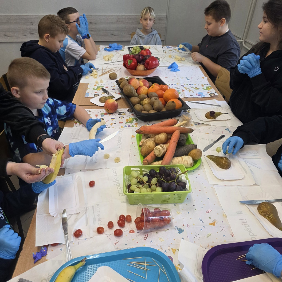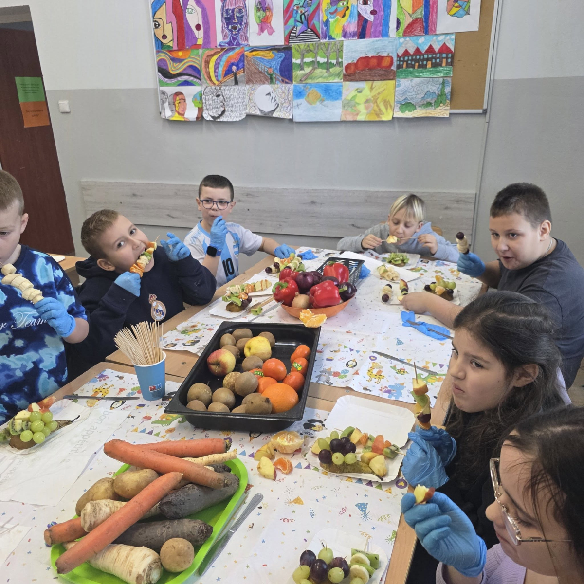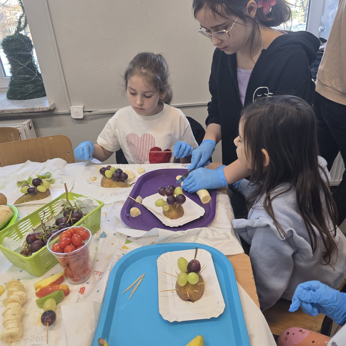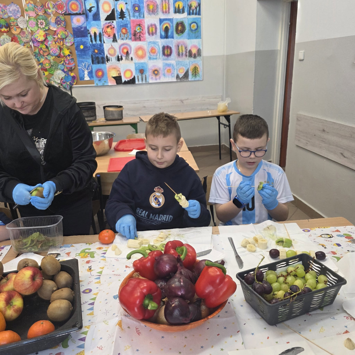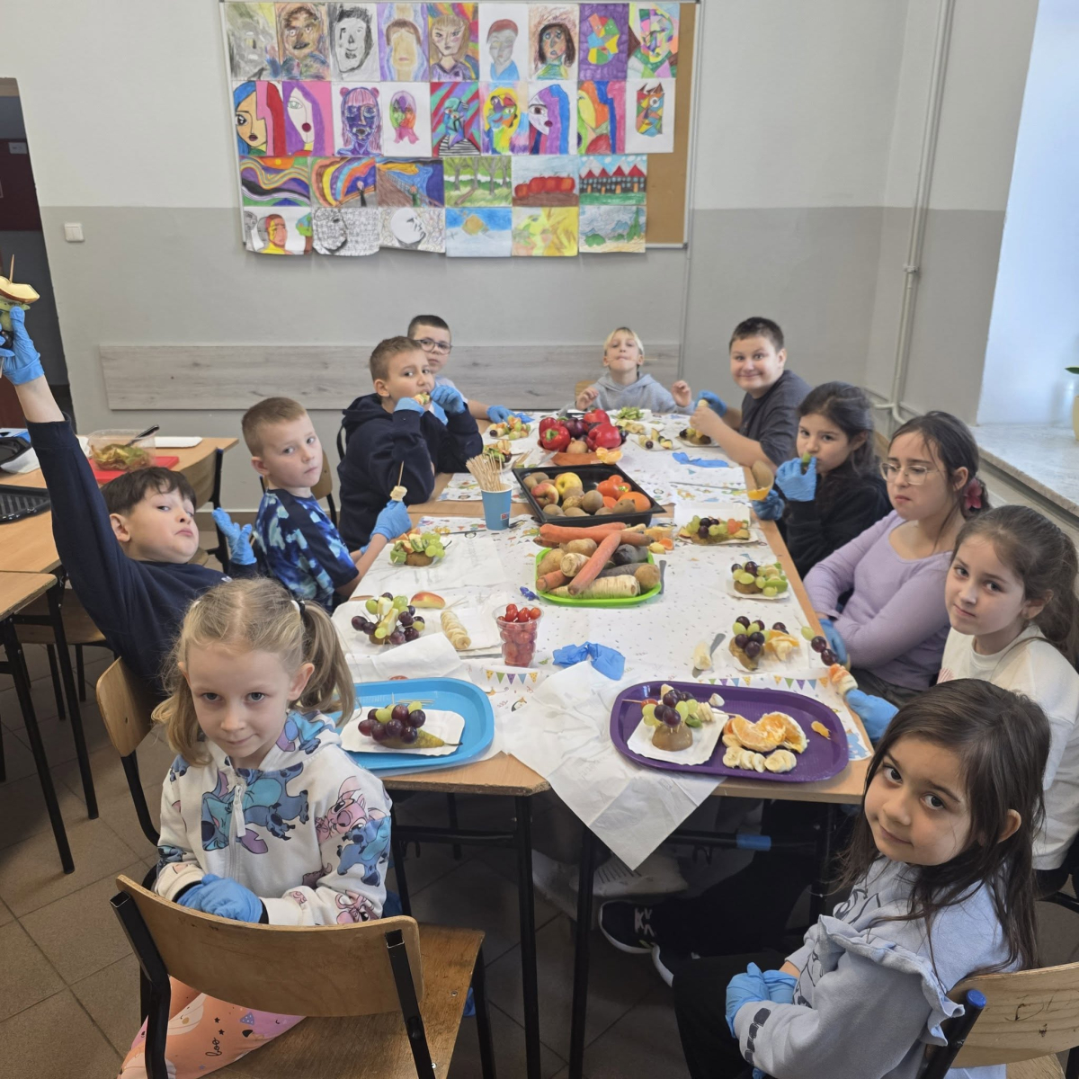 W pierwszym tygodniu ferii zimowych w naszej szkole odbywały się zajęcia feryjne, które dostarczyły uczniom wielu niezapomnianych wrażeń. Każdy dzień przynosił nowe atrakcje, a przygotowany program łączył naukę, zabawę, kreatywność oraz aktywność ruchową. Na początku dzieci uczestniczyły w zajęciach z zakresu pierwszej pomocy, podczas których poznały podstawowe zasady udzielania pomocy w nagłych sytuacjach. Dużym zainteresowaniem cieszyły się gry i zabawy ruchowe, które pozwalały rozładować energię i sprzyjały integracji grupy. Nie zabrakło działań rozwijających wyobraźnię i zainteresowania czytelnicze. Uczniowie wzięli udział w zajęciach Book Trailer- Doktor Dolittle. Kolejne dni upływały pod znakiem dobrej zabawy- były karaoke, zajęcia Magia dźwięków i kolorów, kalambury- gry bez prądu, które pokazały, że można świetnie bawić się bez użycia ekranów. Dużo radości sprawiły dzieciom warsztaty kulinarne Smacznie, zdrowo, kolorowo. Uczniowie przygotowywali szaszłyki i jeżyki owocowe oraz warzywne ludziki, ucząc się zasad zdrowego odżywiania w praktyczny i bardzo atrakcyjny sposób. Ważnym elementem ferii były zajęcia profilaktyczne. Dzieci wykonały "drzewko offline", na którym wykonały rysunki przedstawiające pomysły na spędzanie wolnego czasu bez gier i internetu. Zajęcia skłaniały do refleksji i rozmów o zdrowych nawykach. Nie zabrakło również zabaw i konkursów, quizów językowych oraz zajęć z zakresu Healty Lifestyle, które w przystępny sposób promowały zdrowy styl życia. Ogromne zainteresowanie wzbudziły warsztaty Magiczny świat chemii, podczas których uczniowie obserwowali różnorodne eksperymenty, odkrywając, że nauka może być prawdziwą przygodą. Dzieci brały także udział w warsztatch origami, które rozwijały cierpliwość, koncentrację i zdolności manualne.