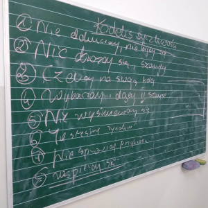 Podczas spotkań rozmawialiśmy o życzliwości, empatii oraz zachowaniach wspierających innych. Uczniowie chętnie dzielili się swoimi doświadczeniami i pomysłami na to, jak okazywać sobie wsparcie na co dzień. Efektem naszej wspólnej pracy było stworzenie Kodeksu Życzliwości, który będzie przypominał, jak ważne są dobre relacje i słowa.
