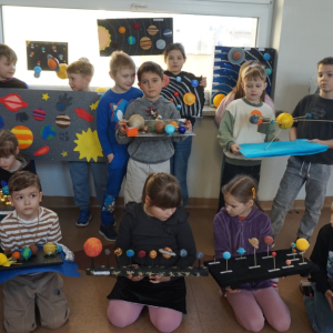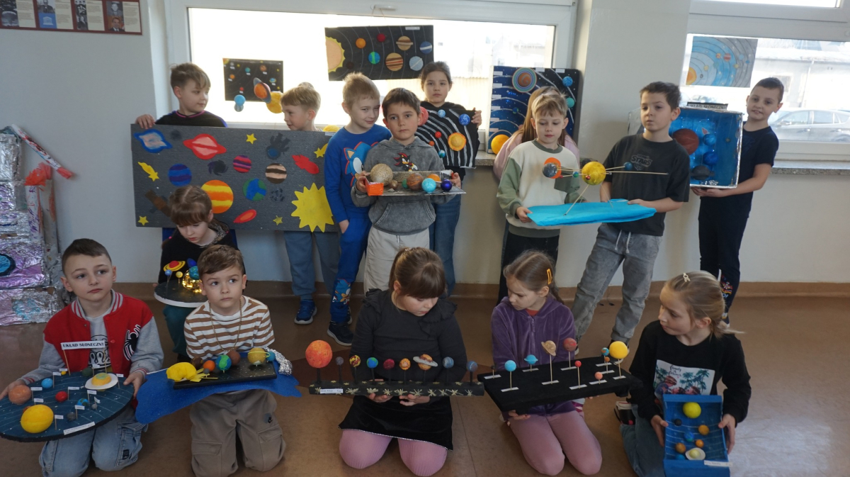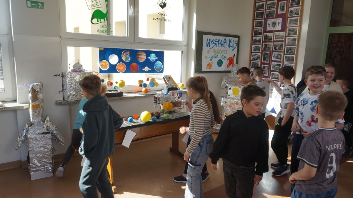 Uczniowie klas pierwszych Szkoły Podstawowej nr 1 im. gen. bryg. S. Gano w Opatowie w ramach zajęć lekcyjnych o kosmosie wykonali na zajęciach technicznych makiety przedstawiające przestrzeń kosmiczną. Podczas pracy dzieci wykazały się dużą kreatywnością i zaangażowaniem, wykorzystując różnorodne materiały oraz techniki plastyczno-techniczne. Powstałe makiety przedstawiają planety, rakiety, gwiazdy oraz inne elementy związane z kosmosem. Efekty pracy uczniów zostały zaprezentowane na specjalnej wystawie udostępnionej społeczności szkolnej Jedynki. Wystawa wzbudziła duże zainteresowanie wśród uczniów i jest doskonałą okazją do podzielenia się efektami pracy oraz wiedzą zdobytą podczas zajęć o kosmosie.