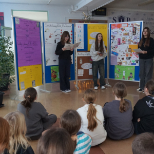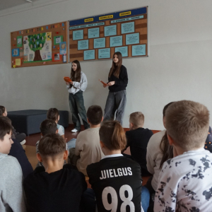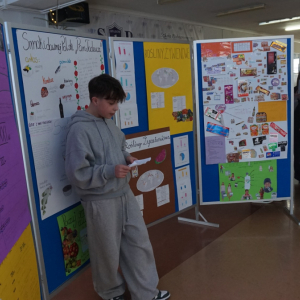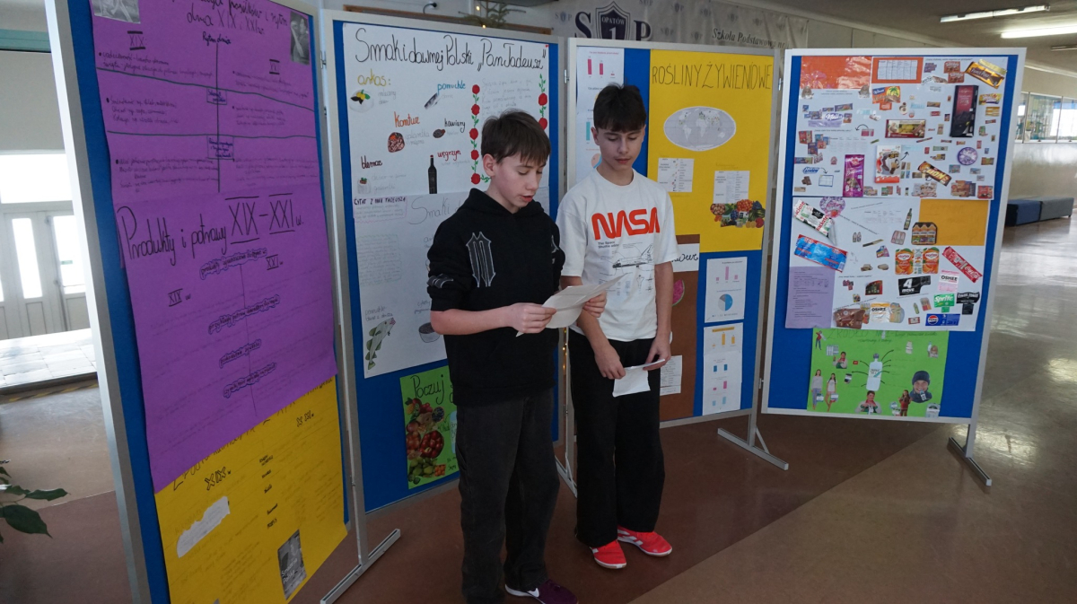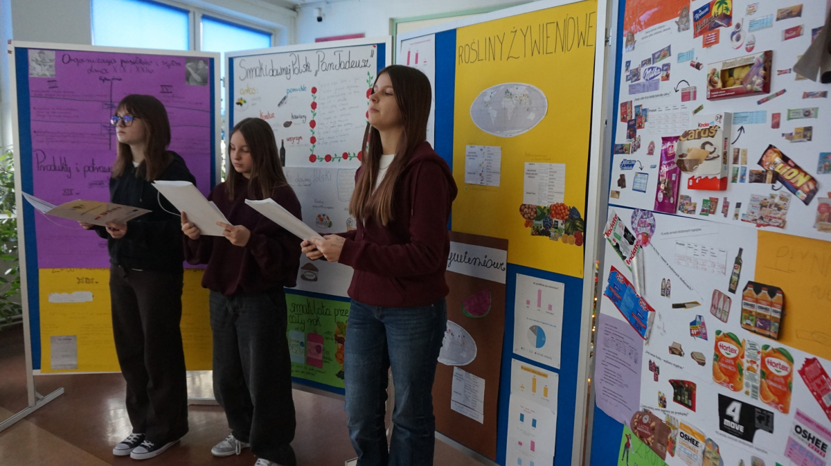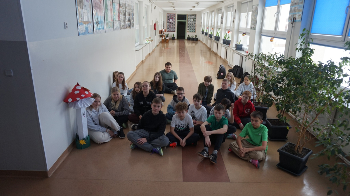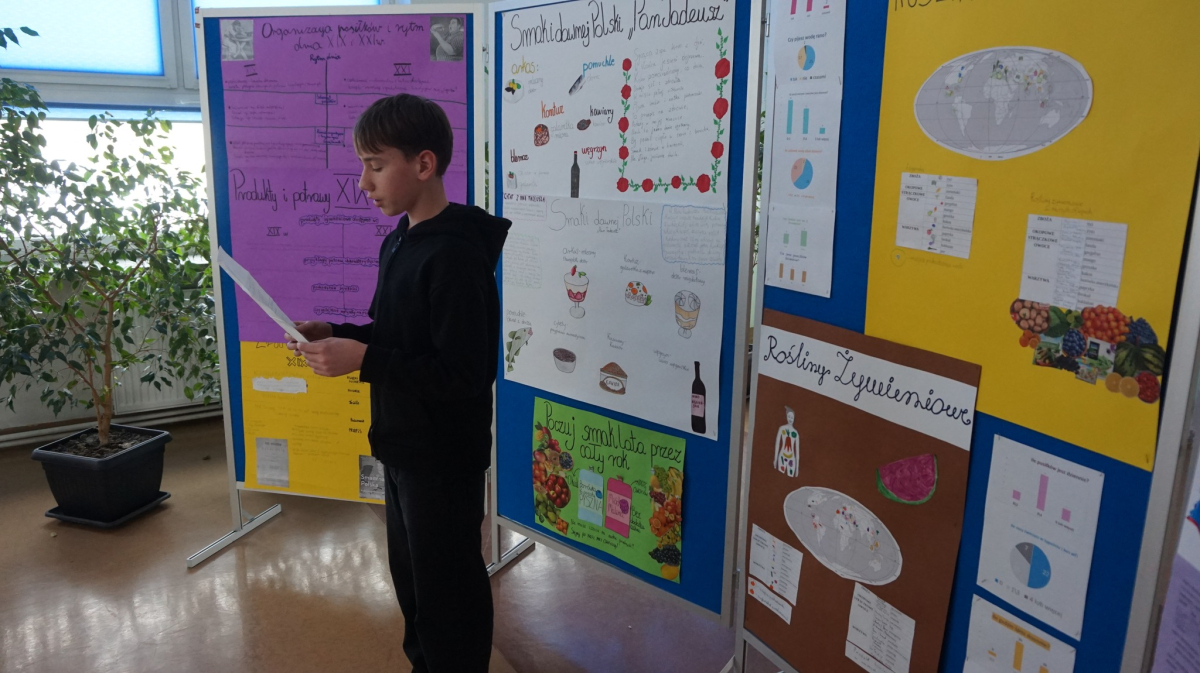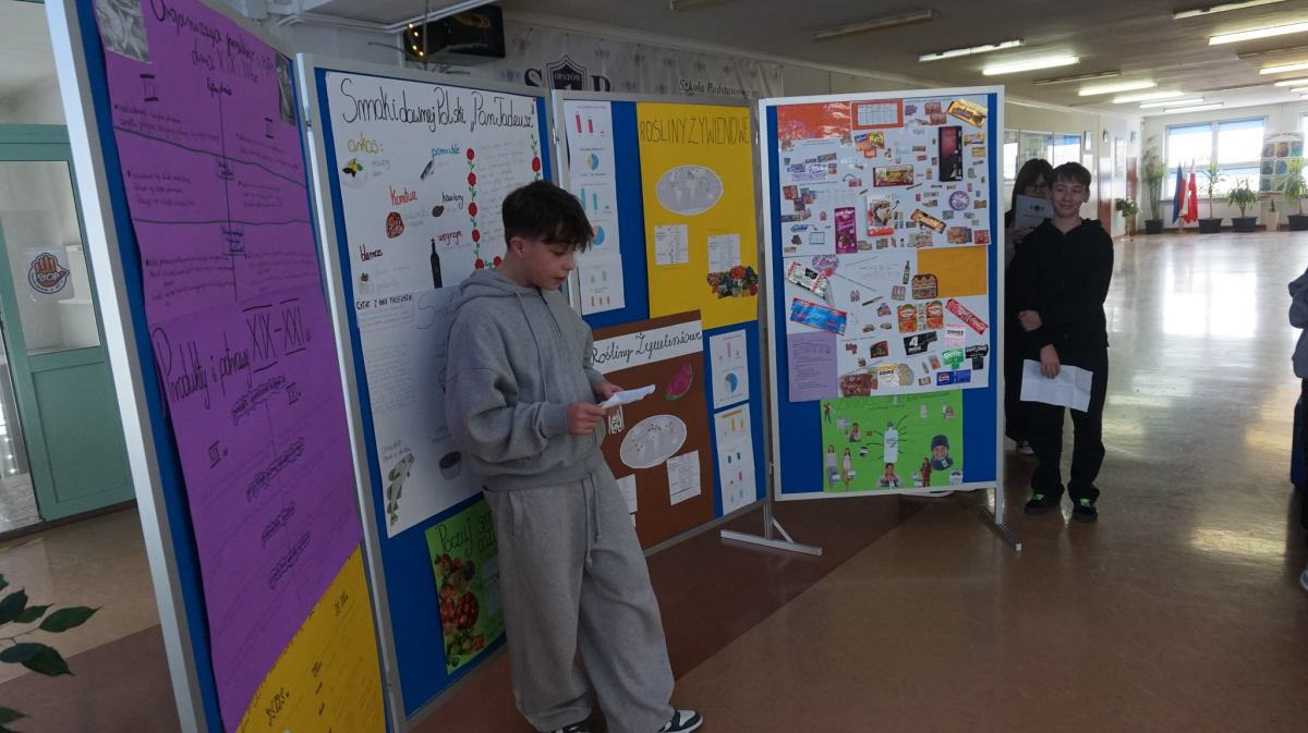 Uczniowie klasy 7b przedstawiają uczniom klas 4-tych oraz klasie 6a Opatowskiej Jedynki wnioski oraz materiały opracowane podczas realizacji projektu „Małe kroki do wielkiego zdrowia”, który został zrealizowany w ramach ogólnopolskiego programu Moc Relacji w Edukacji – łączymy, aby zmieniać.