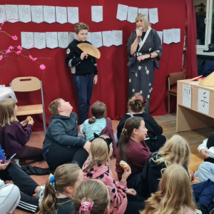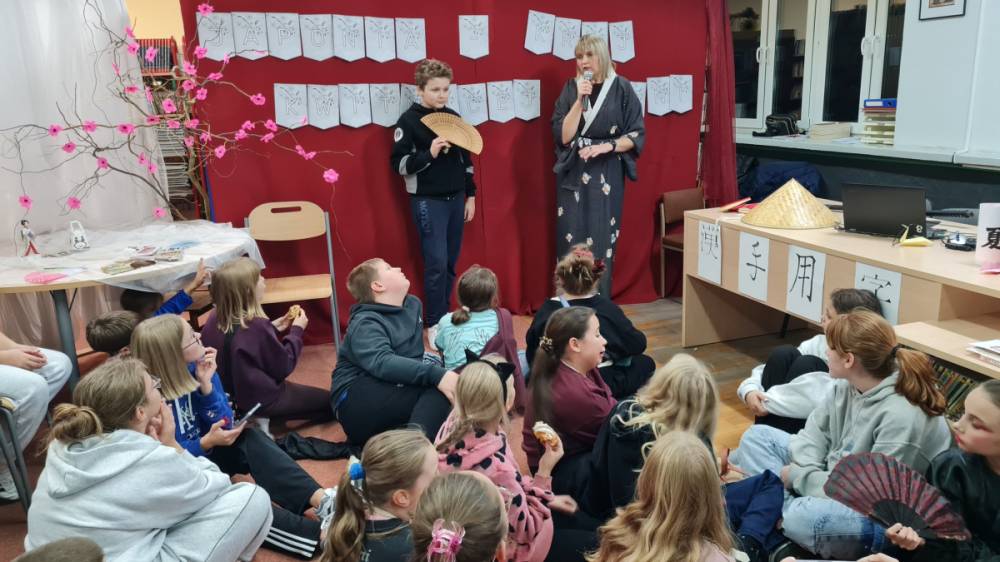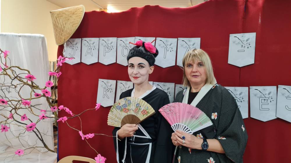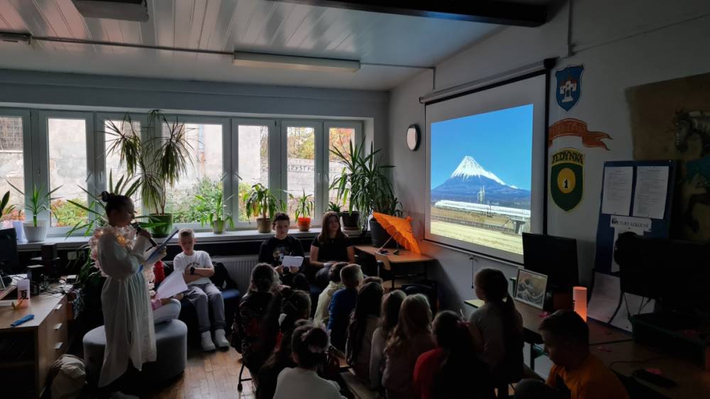Spotkanie rozpoczęło się od wiersza Joanny Mueller „Jest taki portal”. Uczniowie zaprezentowali informacje o historii i kulturze Japonii, a pani Joanna Sobczyk opowiedziała o swojej podróży do Japonii, pokazując pamiątki i zdjęcia.