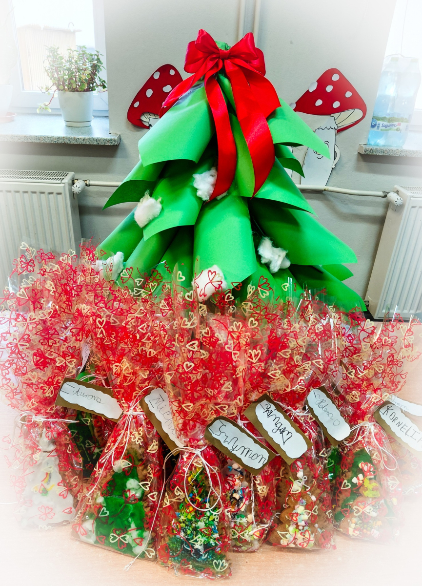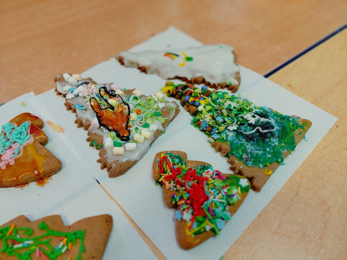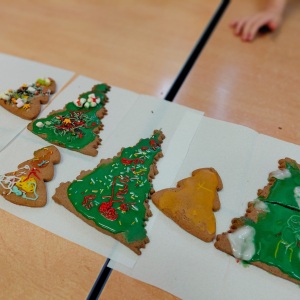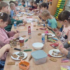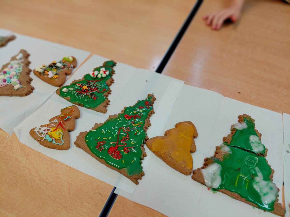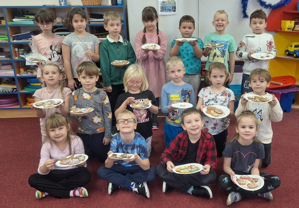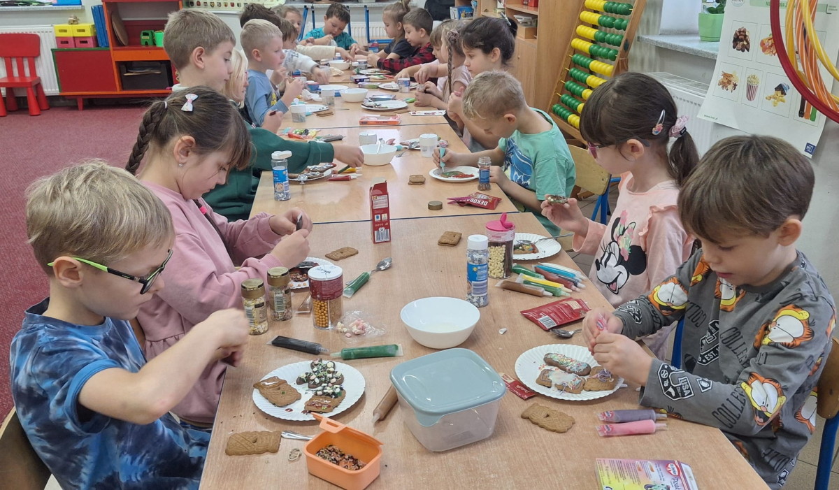 Na początku zajęć dzieci dowiedziały się, z jakich składników powstają pierniki oraz jak wyglądają świąteczne przygotowania w polskiej tradycji. Następnie omówiono zasady bezpiecznej i higienicznej pracy. Podczas dekorowania mali artyści wykazali się pomysłowością i dokładnością, tworząc niepowtarzalne wzory.