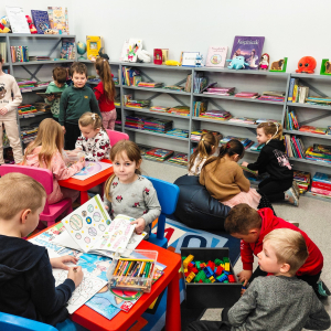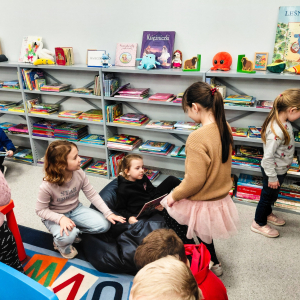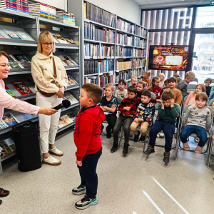 Podczas spotkania, które przebiegło w serdecznej i radosnej atmosferze dzieci miały możliwość wypowiedzenia się do radia i spędzić miło czas w kąciku zabaw w czytelni biblioteki.
