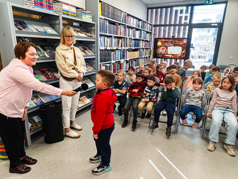 Z okazji Dnia Kobiet dzieci z oddziałów przedszkolnych A i B Szkoły Podstawowej nr 1 im. gen. bryg. S. Gano w Opatowie odwiedziły Powiatową i Miejsko - Gminną Bibliotekę Publiczną im. Stanisława Czernika w Opatowie, gdzie odbyło się miłe spotkanie z Panią Dyrektor, paniami tam pracującymi oraz z panią z Radia Opatów i OOK TV. Podczas wizyty dzieci złożyły serdeczne życzenia, poznały pracę kobiet na różnych stanowiskach oraz wysłuchały krótkiej rozmowy o tym, dlaczego warto okazywać szacunek i życzliwość kobietom. Dla dzieci była to okazja do rozwijania zainteresowań czytelniczych oraz poznania ważnej roli biblioteki w życiu każdego człowieka, a także w życiu szkoły.