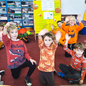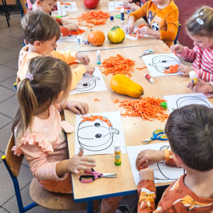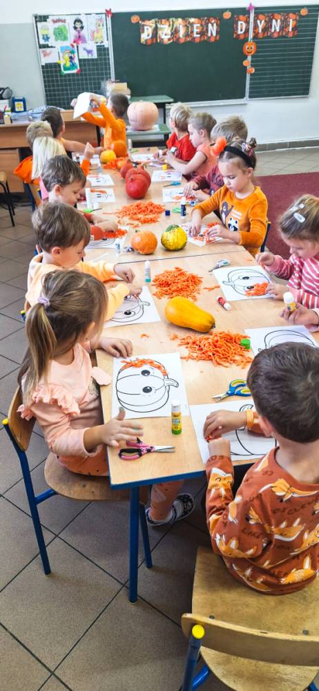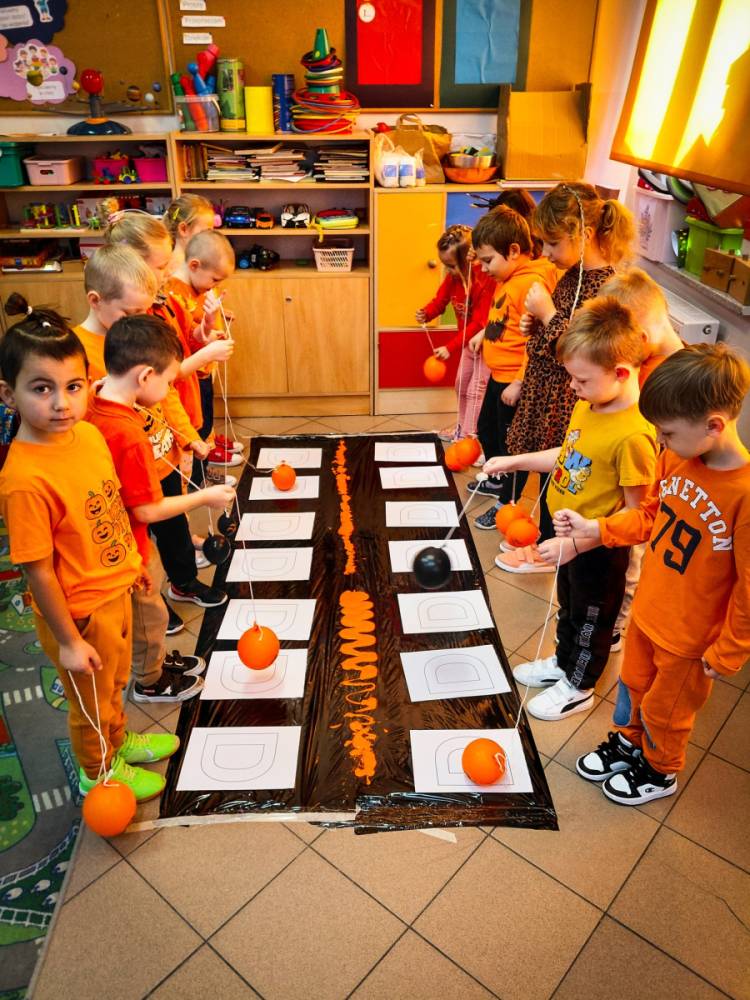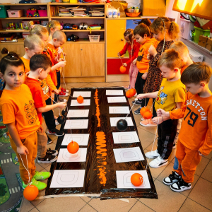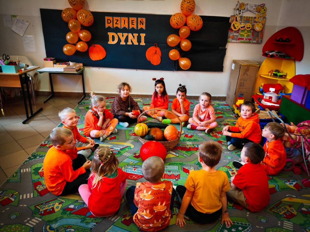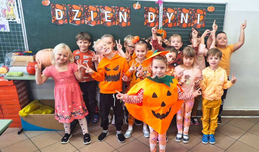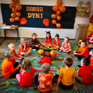 Przedszkolne sale wypełniły się pomarańczowymi dekoracjami, dyniami różnej wielkości oraz uśmiechami dzieci ubranych w barwy jesieni. Przedszkolaki poznawały ciekawostki o dyni, jej właściwości zdrowotne i zastosowanie w kuchni, a następnie uczestniczyły w zabawach ruchowych, konkursach i zajęciach plastycznych.