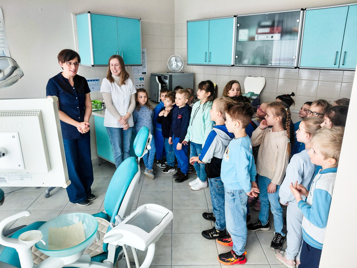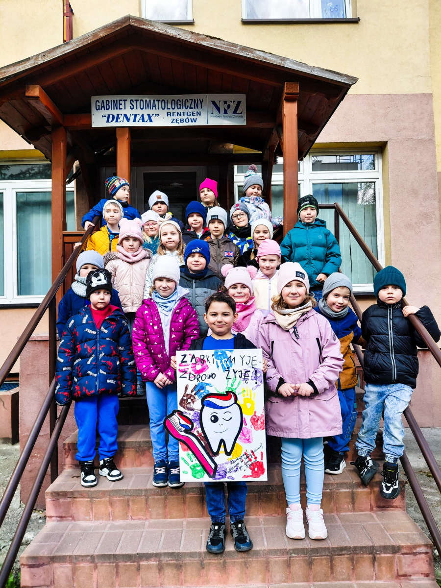10.04.2026r. dzieci z oddziałów przedszkolnych Szkoły Podstawowej nr 1 im. gen. bryg. S. Gano w Opatowie odwiedziły gabinet dentystyczny „Dentax” w Opatowie. Celem wizyty było poznanie zawodu stomatologa oraz wyposażenia gabinetu. Podczas spotkania dzieci zobaczyły, jak wygląda praca dentysty, poznały podstawowe narzędzia oraz dowiedziały się, jak ważna jest higiena jamy ustnej i regularne wizyty kontrolne. Zajęcia przebiegły w miłej atmosferze, a uczestnicy wykazali duże zainteresowanie. Na zakończenie dzieci wręczyły przygotowany przez siebie upominek.