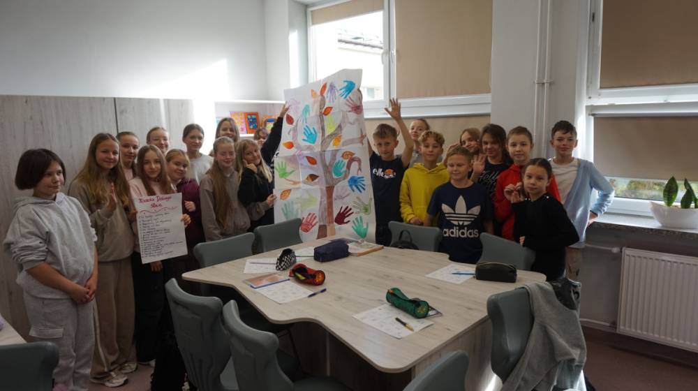 Na zakończenie zajęć dzieci przygotowały plakat promujący Kodeks Dobrego Słowa, który – razem z samym kodeksem – zawisł szkolnej bibliotece, przypominając wszystkim, że dobre słowa mają moc zmieniać świat na lepsze.
