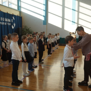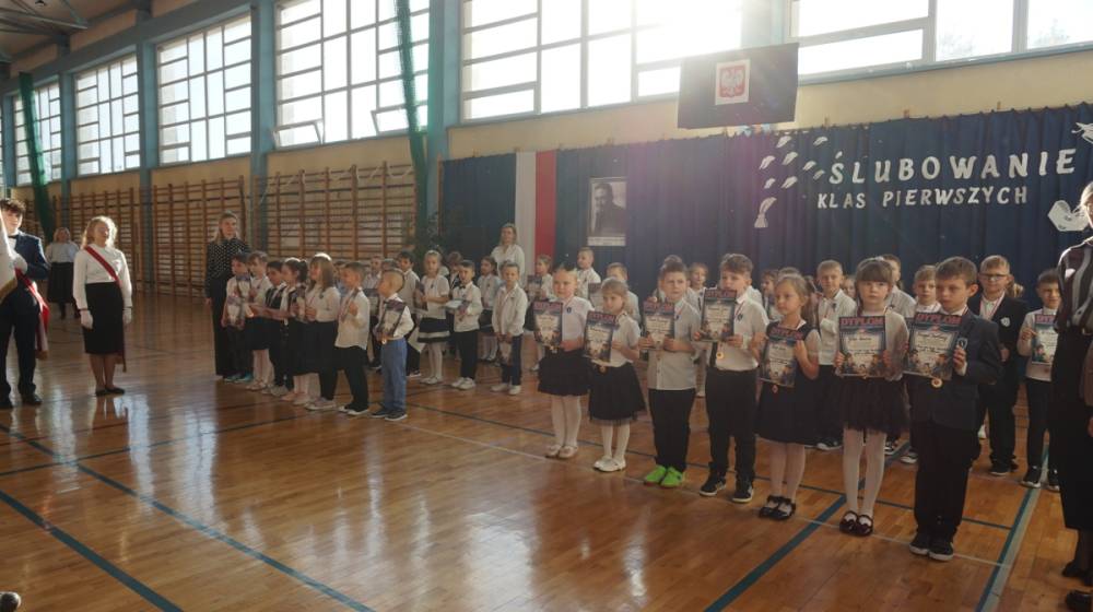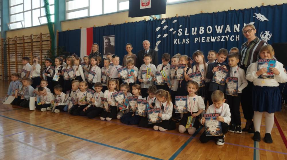 Ślubowanie Pierwszoklasistów to od lat niezwykłe i bardzo ważne wydarzenie w kalendarzu Szkoły Podstawowej nr 1 im. gen. bryg. Stanisława Gano w Opatowie. W bieżącym roku szkolnym uroczystość odbyła się 19 listopada 2025 r. roku w hali sportowej Jedynki. Tam, pierwszoklasiści w obecności Dyrektor Anny Przygody, Wicedyrektora Roberta Wójcika, Pań Wychowawczyń Anny Włodarczyk i Magdaleny Żerdeckiej, Przewodniczącego Samorządu Uczniowskiego Miłosza Wudarczyka oraz licznie zgromadzonych najbliższych zaprezentowali swoje umiejętności recytatorskie i wokalne. Podczas części oficjalnej uczniowie uroczyście ślubowali przed sztandarem szkoły być dobrymi Polakami oraz wzorowymi uczniami Jedynki. Na koniec wydarzenia uczniowie otrzymali z rąk Pani Dyrektor pamiątkowe dyplomy, medale oraz upominki. Następnie wszyscy wykonali wspólne pamiątkowe zdjęcia.