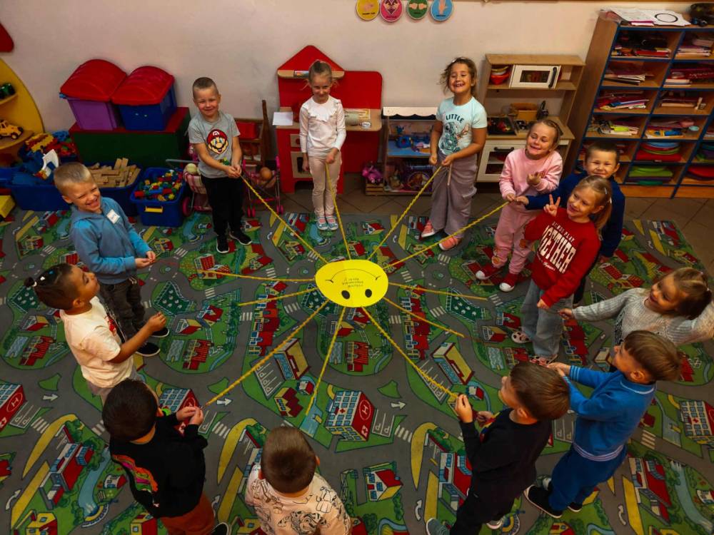 W pierwszym tygodniu października w oddziale 0 b realizowany był Tydzień Budowania Relacji, którego celem było stworzenie atmosfery bezpieczeństwa, wzajemnego szacunku oraz wspólnoty w grupie. Poprzez różnorodne zabawy, rozmowy, aktywności plastyczne i integracyjne, dzieci miały okazję lepiej się poznać, nauczyć się współpracy i budować pozytywne relacje z nauczycielem i z rówieśnikami. Uczestniczyły w zabawach integracyjnych, słuchały opowiadań o przyjaźni i emocjach, tworzyły prace plastyczne, stworzyły wspólne słońce budowania relacji. Tydzień zakończyliśmy Dniem Uśmiechu. Dzięki tym działaniom dzieci zbudowały fundamenty relacji, które będą rozwijane przez cały rok.