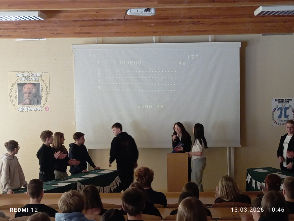 W piątek, 13 marca 2026 roku, nasi uczniowie z klas 8a i 8b Szkoły Podstawowej nr 1 im. gen. bryg. S. Gano w Opatowie uczestniczyli w spotkaniu „Bartosz kocha Ludolfinę", które odbyło się w Liceum Ogólnokształcącym im. Bartosza Głowackiego w Opatowie. Podczas warsztatów uczestnicy mieli okazję wysłuchać historii liczby π, sprawdzić swoją wiedzę matematyczną oraz wziąć udział w teleturnieju „Familiada". Dziękujemy za zaproszenie oraz ciekawe i inspirujące spotkanie! Była to także świetna okazja do rozwijania matematycznych pasji i integracji z uczniami innych szkół.