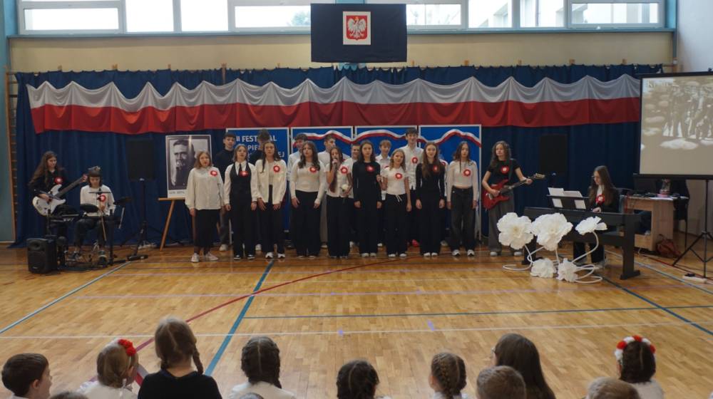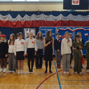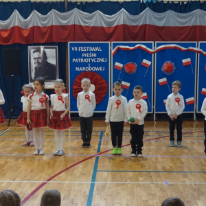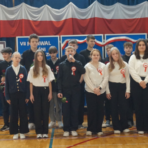 W ramach VII Szkolnego Festiwalu Pieśni Patriotycznej i Narodowej w Jedynce swoje umiejętności zaprezentowali uczniowie w dwóch kategoriach: klasy 0-3 oraz 4-8. Młodzi artyści z dużym zaangażowaniem wykonali wybrane pieśni o tematyce patriotycznej, pokazując nie tylko swój talent muzyczny, ale także wrażliwość na wartości związane z historią i tradycją naszego kraju. Publiczność z entuzjazmem oklaskiwała każde wykonanie, a atmosfera wydarzenia sprzyjała budowaniu poczucia wspólnoty i dumy z narodowego dziedzictwa.