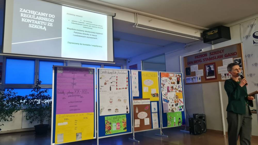 Zebrania klasowe z wychowawcami poprzedziło wspólne spotkanie wszystkich rodziców z dyrektorem szkoły, panią Anną Przygodą. Dyrektor serdecznie powitała zgromadzonych rodziców oraz nauczycieli, dziękując im za dotychczasową współpracę i zaangażowanie w życie szkoły.