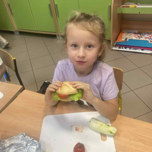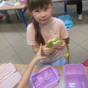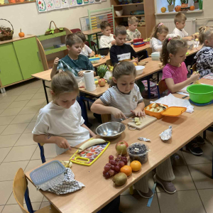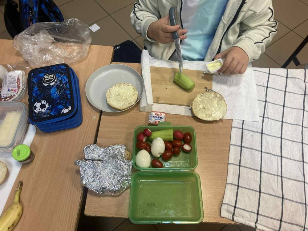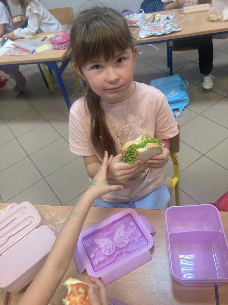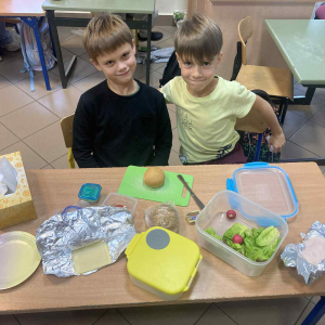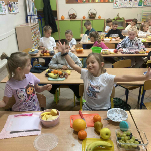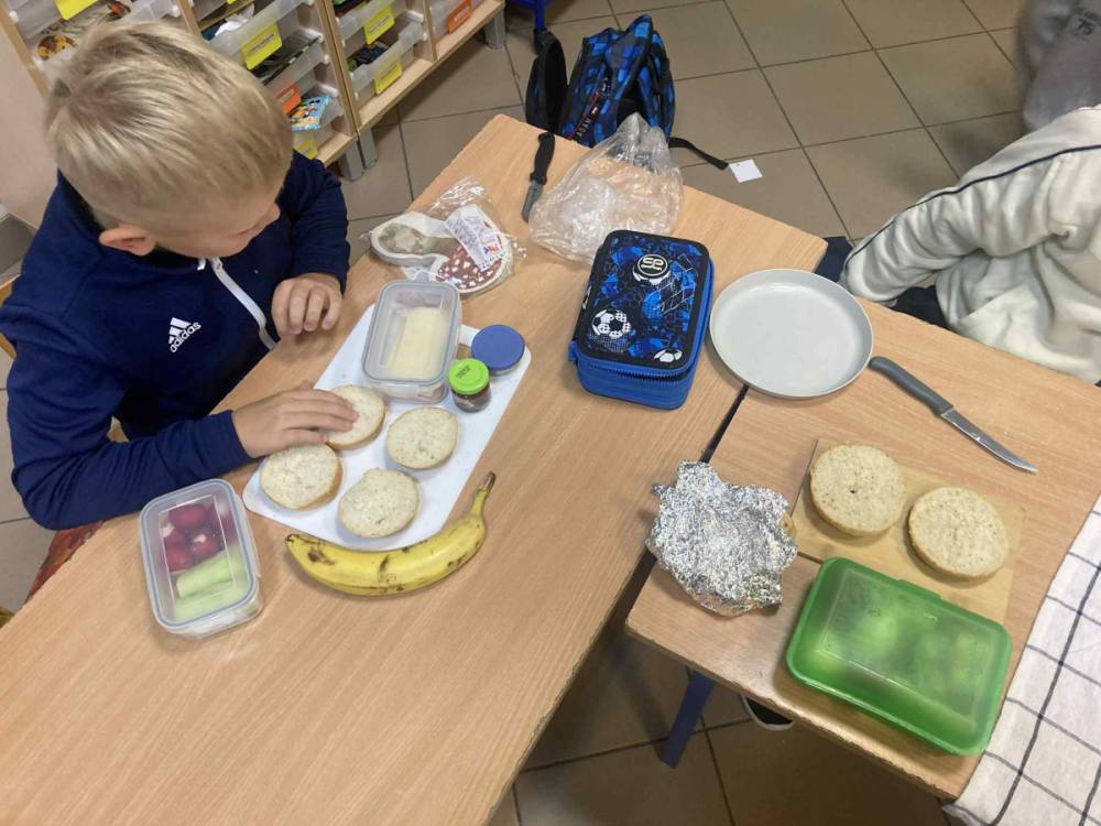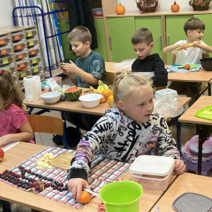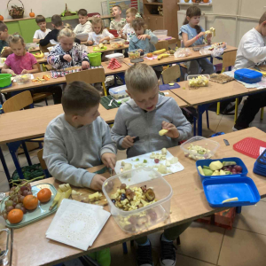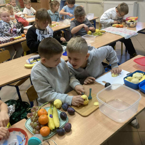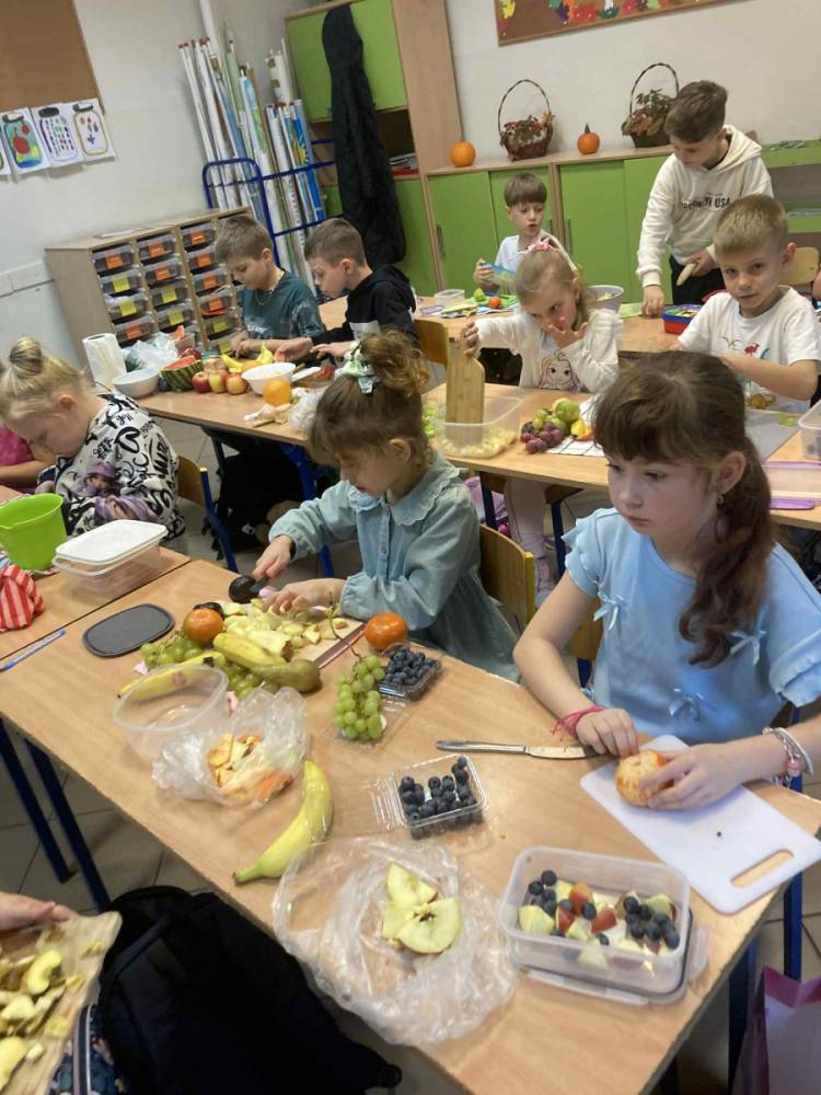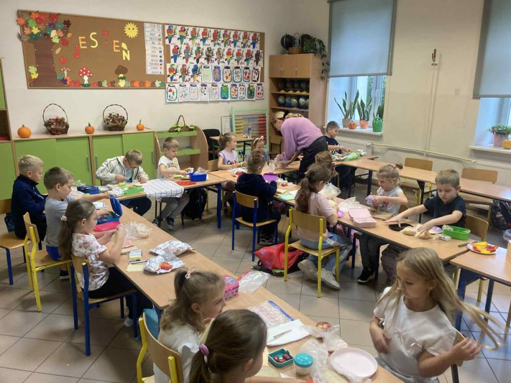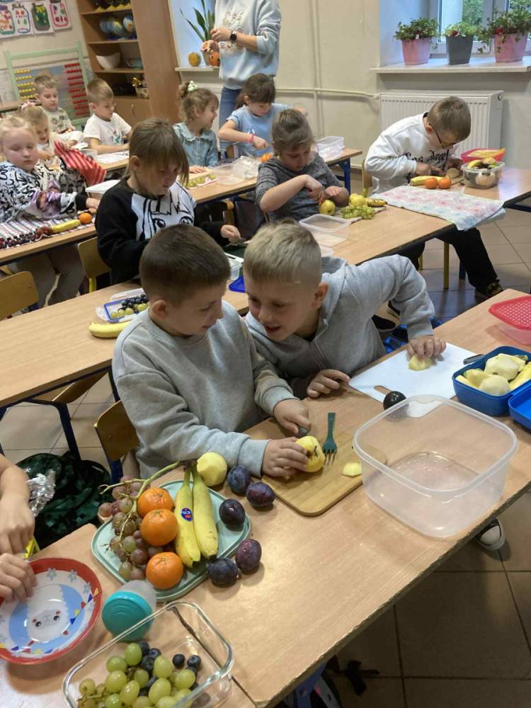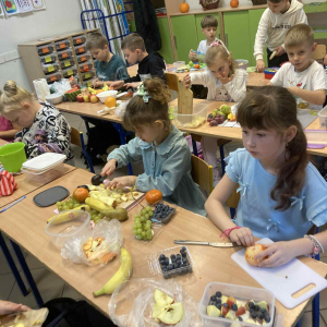 W klasie 1B, w ramach programu Szkoła promująca zdrowie, rozpoczęliśmy realizację własnej inicjatywy pod nazwą Zdrowe piątki. Co tydzień w piątek rozmawiamy o zdrowym stylu życia i dobrych nawykach żywieniowych. Uczniowie przygotowali już pyszną i kolorową sałatkę owocową, a podczas ostatnich zajęć dzieci przygotowały drugie śniadanie- pełne warzyw, owoców i kolorowych kanapek. Wspólne przygotowanie posiłku sprawiło wszystkim wiele radości, a jeszcze więcej przyjemności dało nam wspólne jedzenie przy klasowym stole.