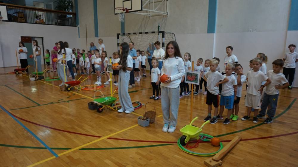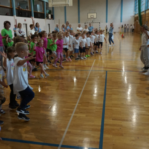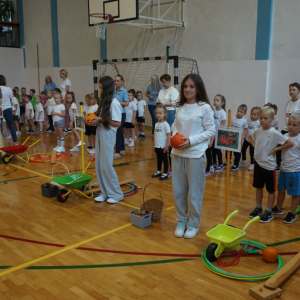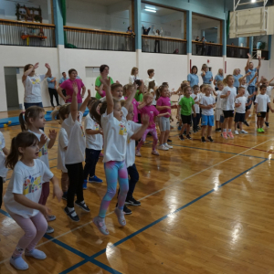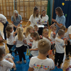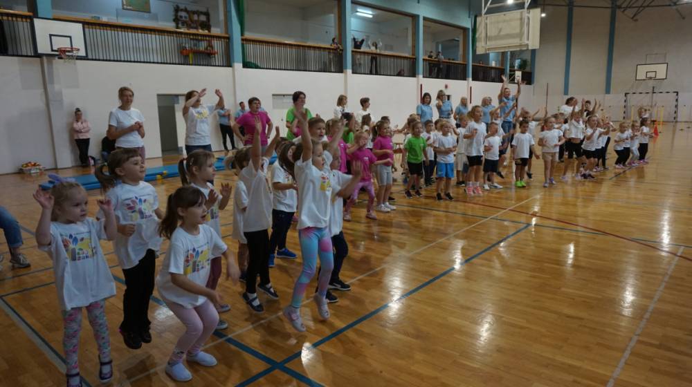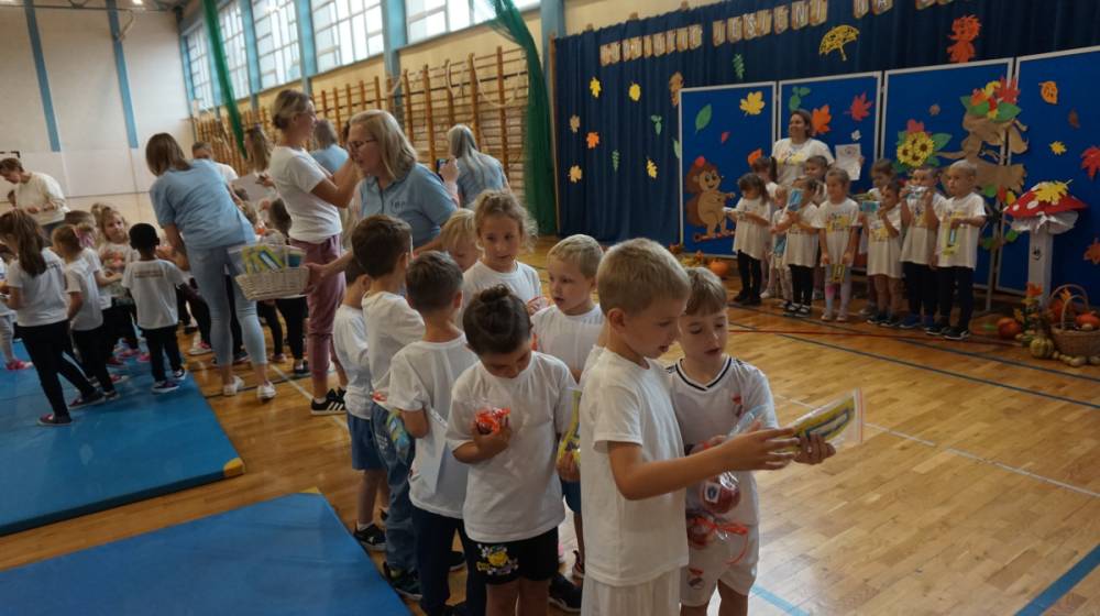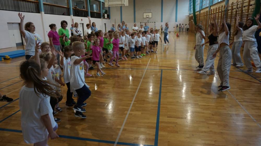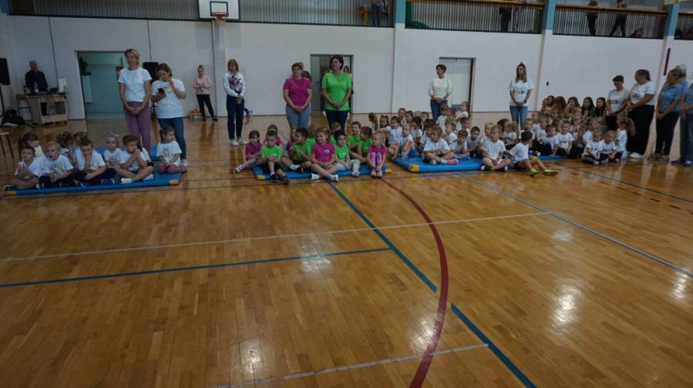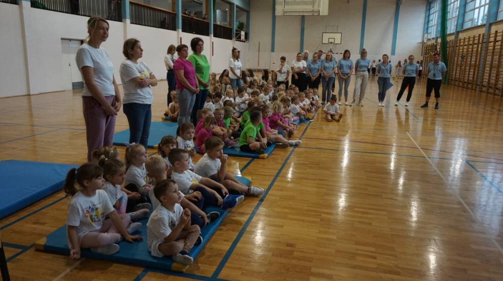 Jednym z pierwszych zadań realizowanych w ramach programu Świętokrzyskiej Sieci Przedszkoli i Szkół Promujących Zdrowie było wydarzenie sportowe, jakie miało miejsce 23 września 2025 r., czyli II edycja Powitanie Jesieni na sportowo w Jedynce. Jak sama nazwa wskazuje Przedszkolaki z Opatowa powitały jesień uczestnicząc w jesiennych zawodach sportowych zorganizowanych w hali sportowej.W imprezie brało udział 5 grup przedszkolnych z opatowskich placówek oświatowych, w tym przedszkolaki z klas 0 „A” i 0 „B” z Jedynki. Głównym celem wydarzenia było aktywne spędzanie czasu i zaangażowanie wszystkich uczniów uczestniczących w zawodach sportowych. Tę sportową imprezę rozpoczęła Pani Dyrektor Anna Przygoda, witając uczestników, a także przybyłych gości: Burmistrza Miasta i Gminy Opatów – Pana Grzegorza Gajewskiego, jego zastępcę – Pana Marcina Słapka,przewodniczącą Rady Miasta – Panią Małgorzatę Szczepańską wraz z wiceprzewodniczącą Rady Miasta – Panią Jolantą Baran. Sprtowe zmagania przedszkolaków rozpoczęła rozgrzewka prowadzona przez uczennice starszych klas. Następnie drużyny poszczególnych szkół i przedszkoli zajęły swoje miejsca, a wcześniej wylosowali nazwę drużyny. Z wielkim zaangażowaniem i dopingiem dzieci wykonywały kolejne konkurencje sportowe. Dodatkowo brały udział w pokazach udzielania pierwszej pomocy przedmedycznej oraz w warsztatach plastycznych pt. „Jesienny pejzaż”.