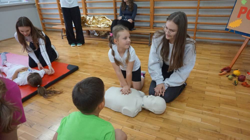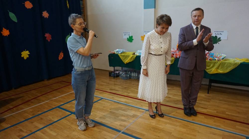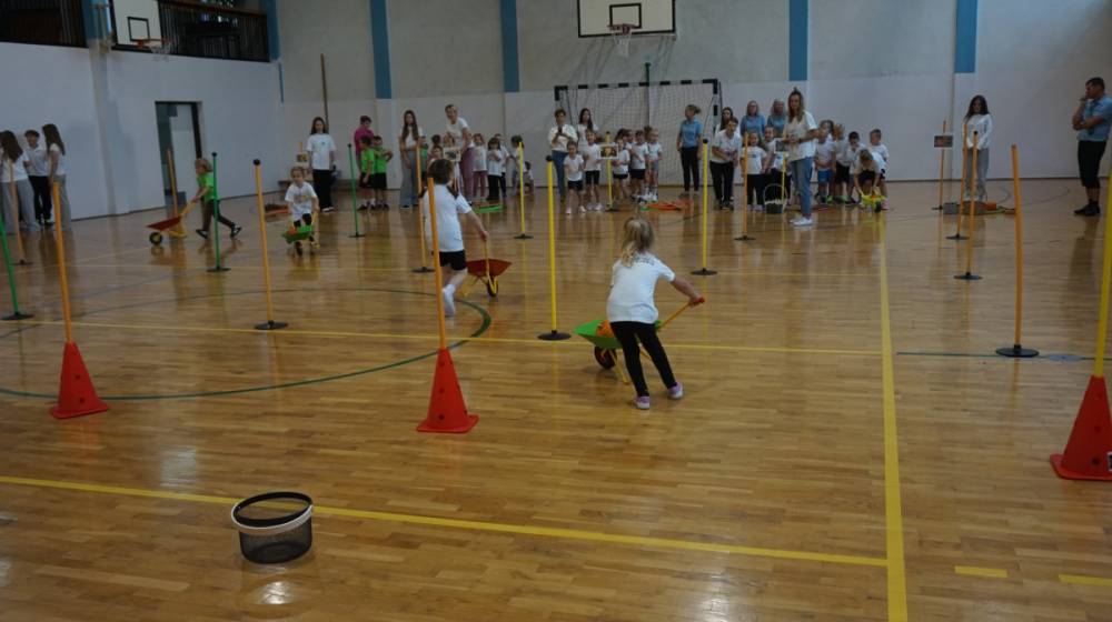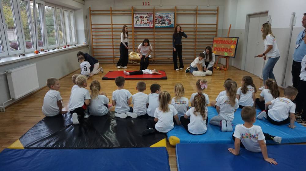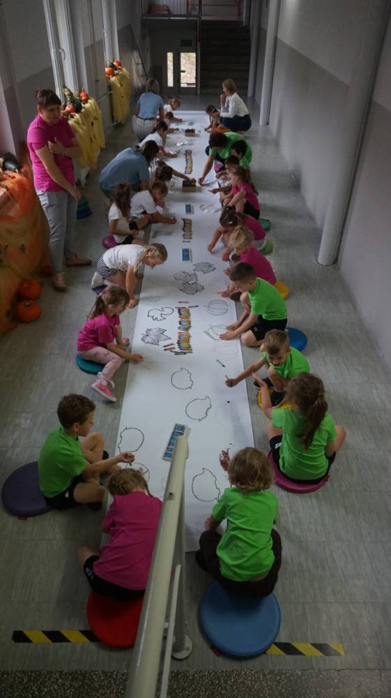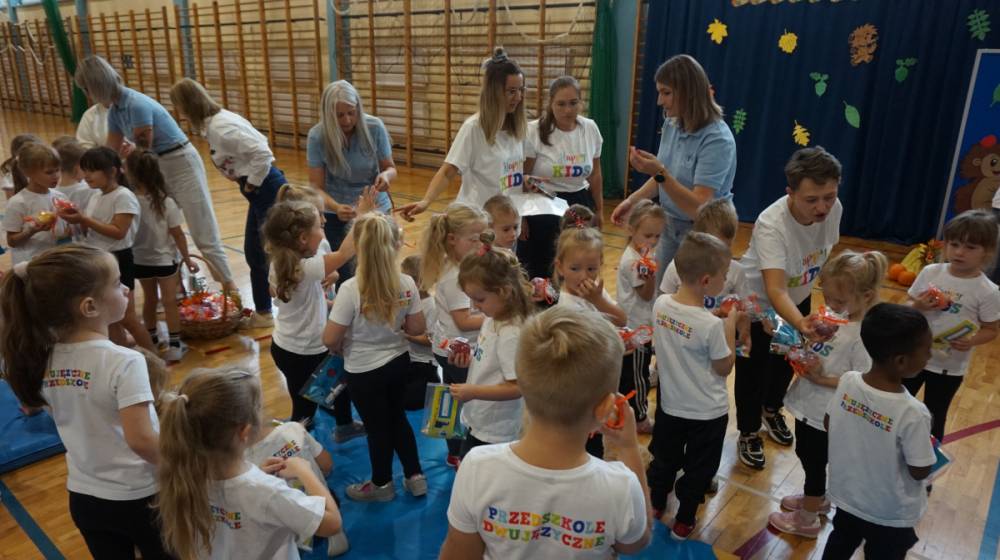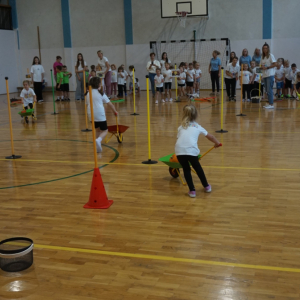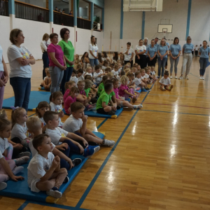 Jednym z pierwszych zadań realizowanych w ramach programu Świętokrzyskiej Sieci Przedszkoli i Szkół Promujących Zdrowie było wydarzenie sportowe, jakie miało miejsce 23 września 2025 r., czyli II edycja Powitanie Jesieni na sportowo w Jedynce. Jak sama nazwa wskazuje Przedszkolaki z Opatowa powitały jesień uczestnicząc w jesiennych zawodach sportowych zorganizowanych w hali sportowej.W imprezie brało udział 5 grup przedszkolnych z opatowskich placówek oświatowych, w tym przedszkolaki z klas 0 „A” i 0 „B” z Jedynki. Głównym celem wydarzenia było aktywne spędzanie czasu i zaangażowanie wszystkich uczniów uczestniczących w zawodach sportowych. Tę sportową imprezę rozpoczęła Pani Dyrektor Anna Przygoda, witając uczestników, a także przybyłych gości: Burmistrza Miasta i Gminy Opatów – Pana Grzegorza Gajewskiego, jego zastępcę – Pana Marcina Słapka,przewodniczącą Rady Miasta – Panią Małgorzatę Szczepańską wraz z wiceprzewodniczącą Rady Miasta – Panią Jolantą Baran. Sprtowe zmagania przedszkolaków rozpoczęła rozgrzewka prowadzona przez uczennice starszych klas. Następnie drużyny poszczególnych szkół i przedszkoli zajęły swoje miejsca, a wcześniej wylosowali nazwę drużyny. Z wielkim zaangażowaniem i dopingiem dzieci wykonywały kolejne konkurencje sportowe. Dodatkowo brały udział w pokazach udzielania pierwszej pomocy przedmedycznej oraz w warsztatach plastycznych pt. „Jesienny pejzaż”.