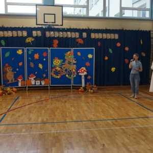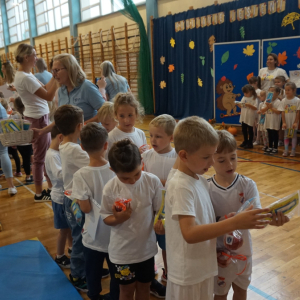 Na zakończenie imprezy Powitanie Jesieni na sportowo w Jedynce Pani Dyrektor Anna Przygoda wręczyła uczestnikom pamiątkowe dyplomy i zaprosiła na przygotowany poczęstunek. Wszyscy pełni pozytywnych wrażeń i emocji pozowali do pamiątkowych zdjęć oraz w dobrych humorach udali się do swoich szkół i przedszkoli.