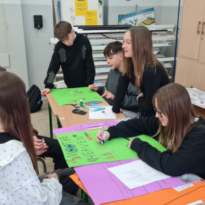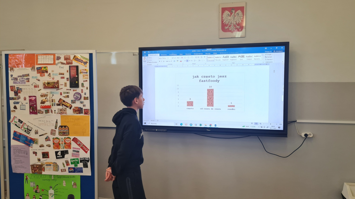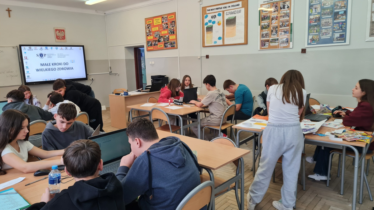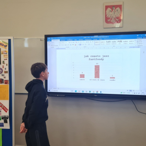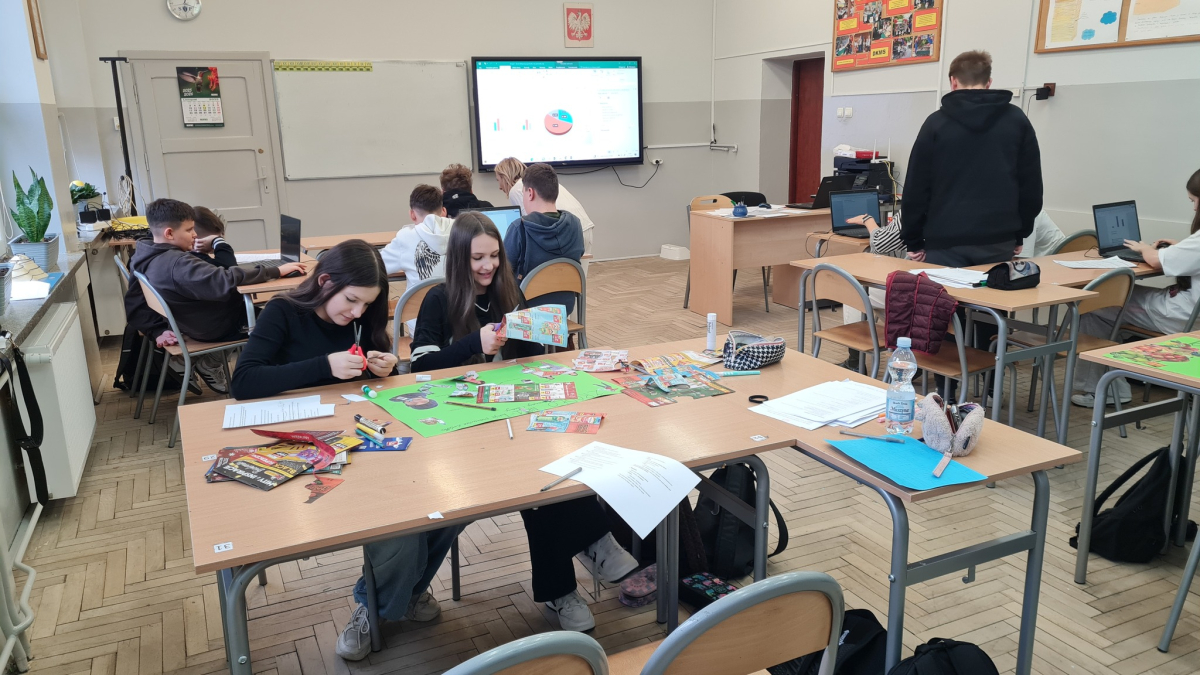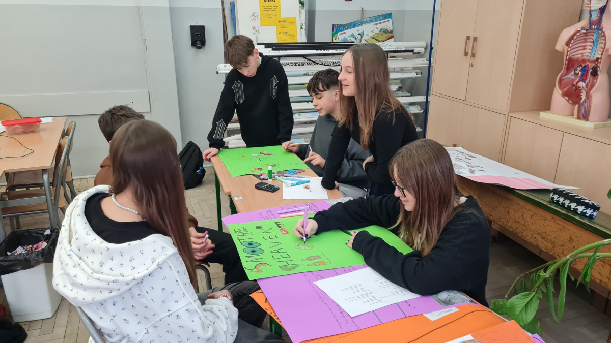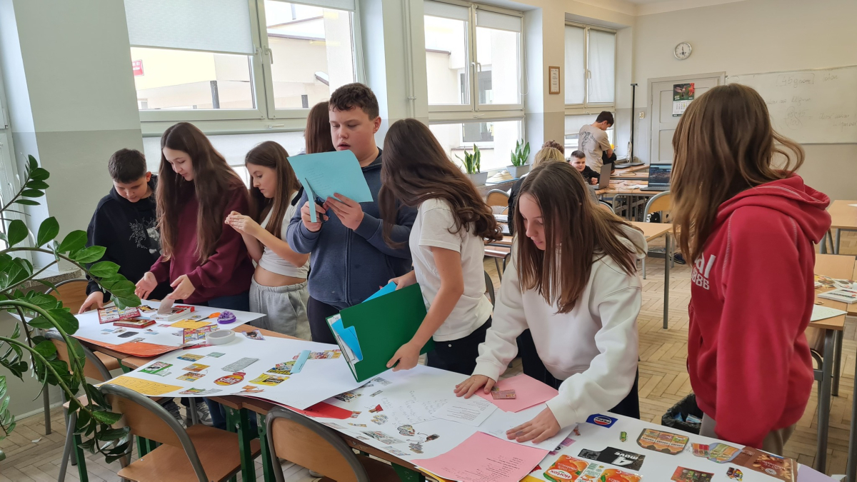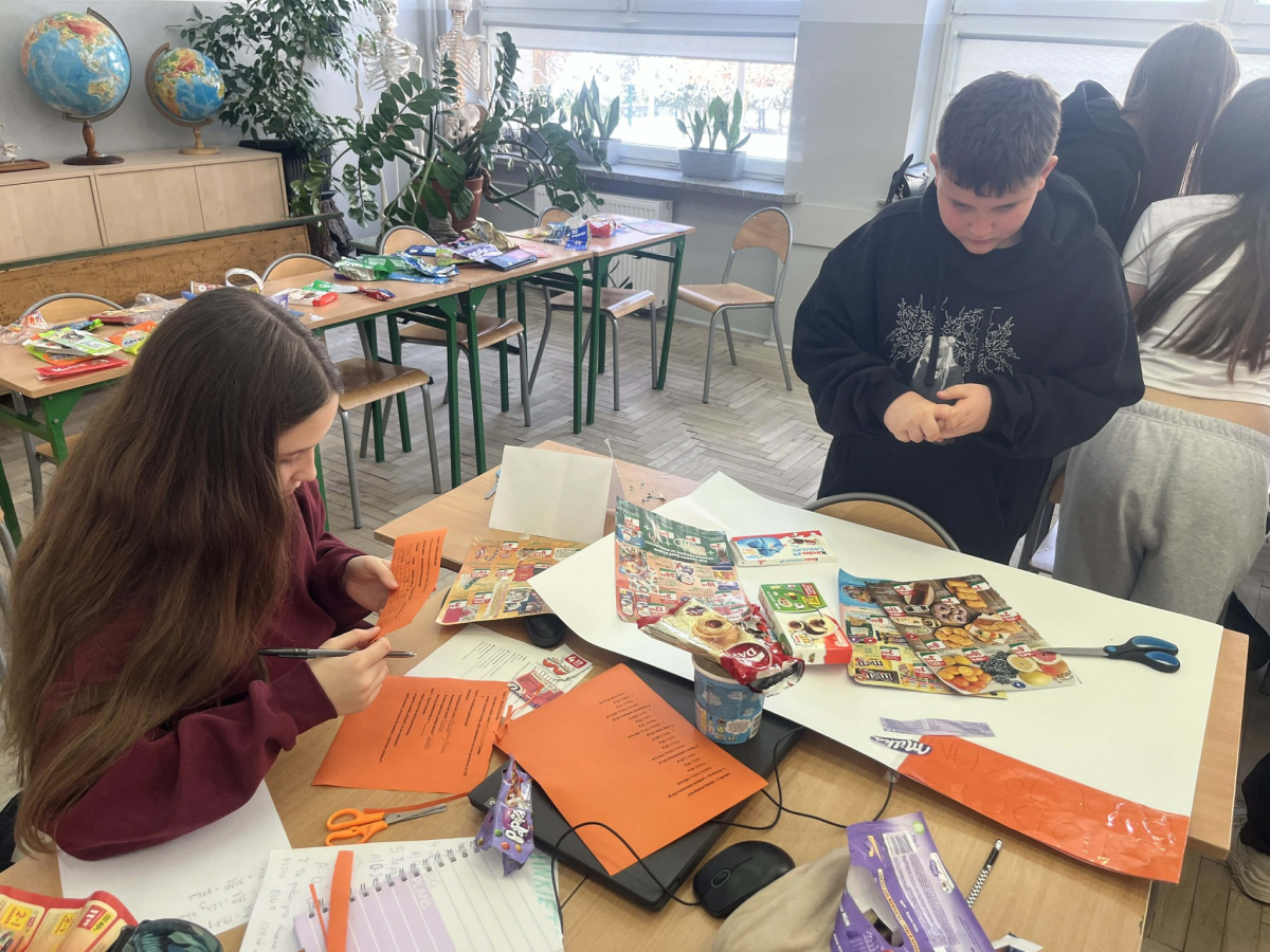 Tego dnia uczniowie badali język reklamy, rozpoznając techniki perswazji i manipulacji. W zespołach opracowali plakaty promujące wybrane zdrowe produkty, dbając o rzetelne i uczciwe przekazy.