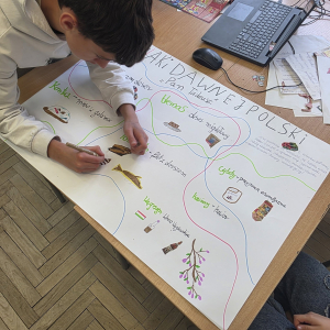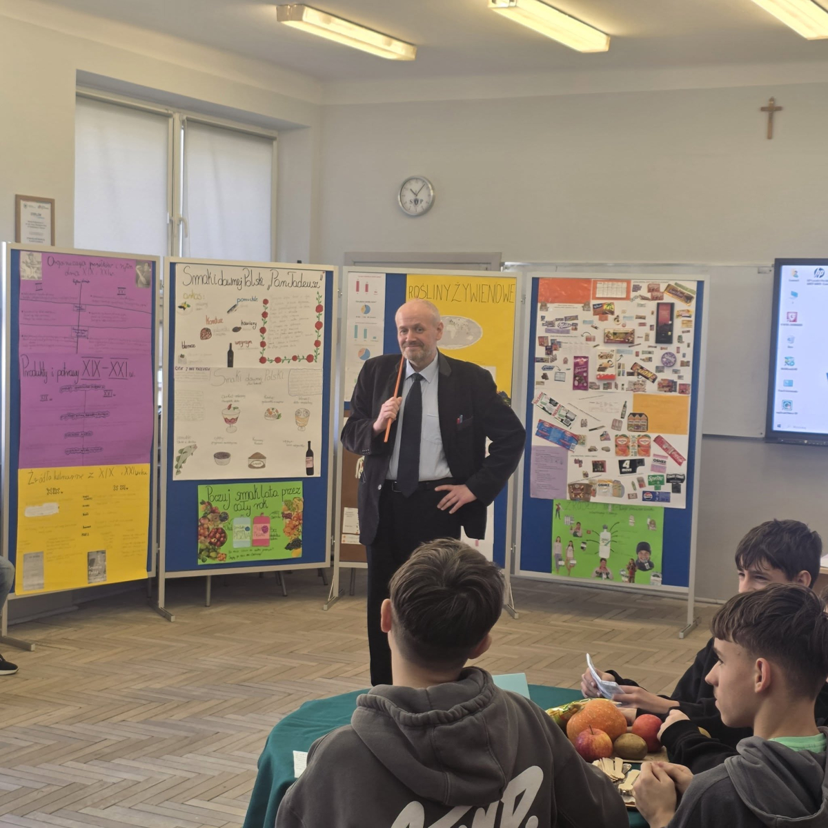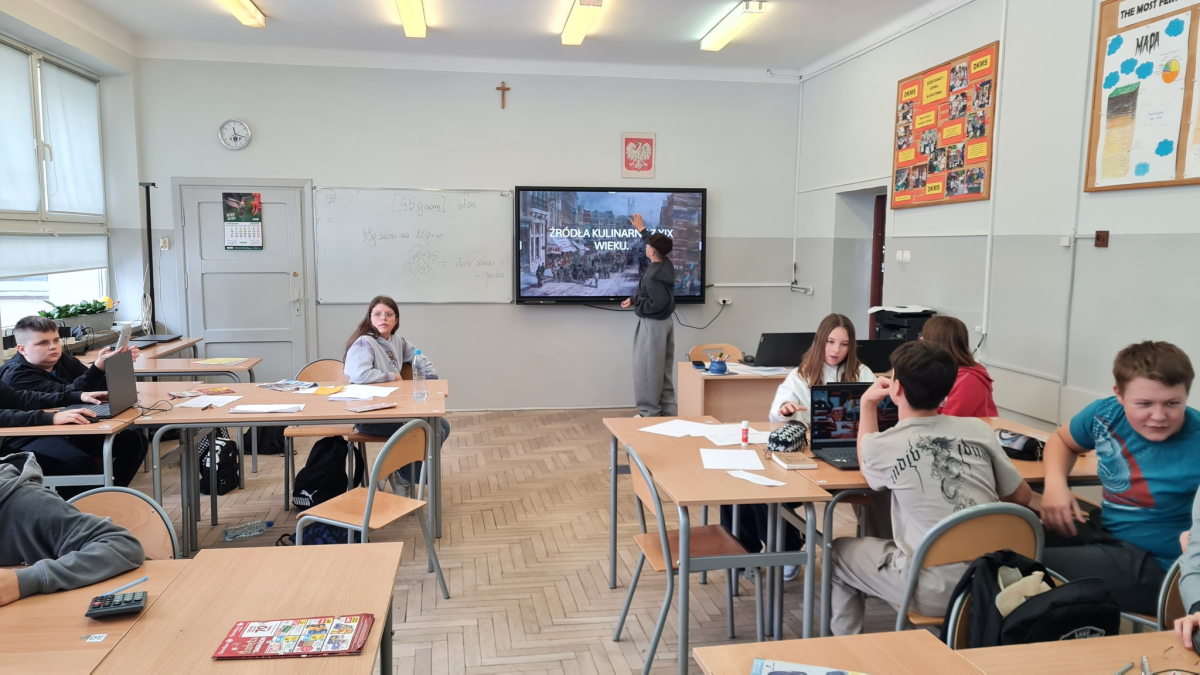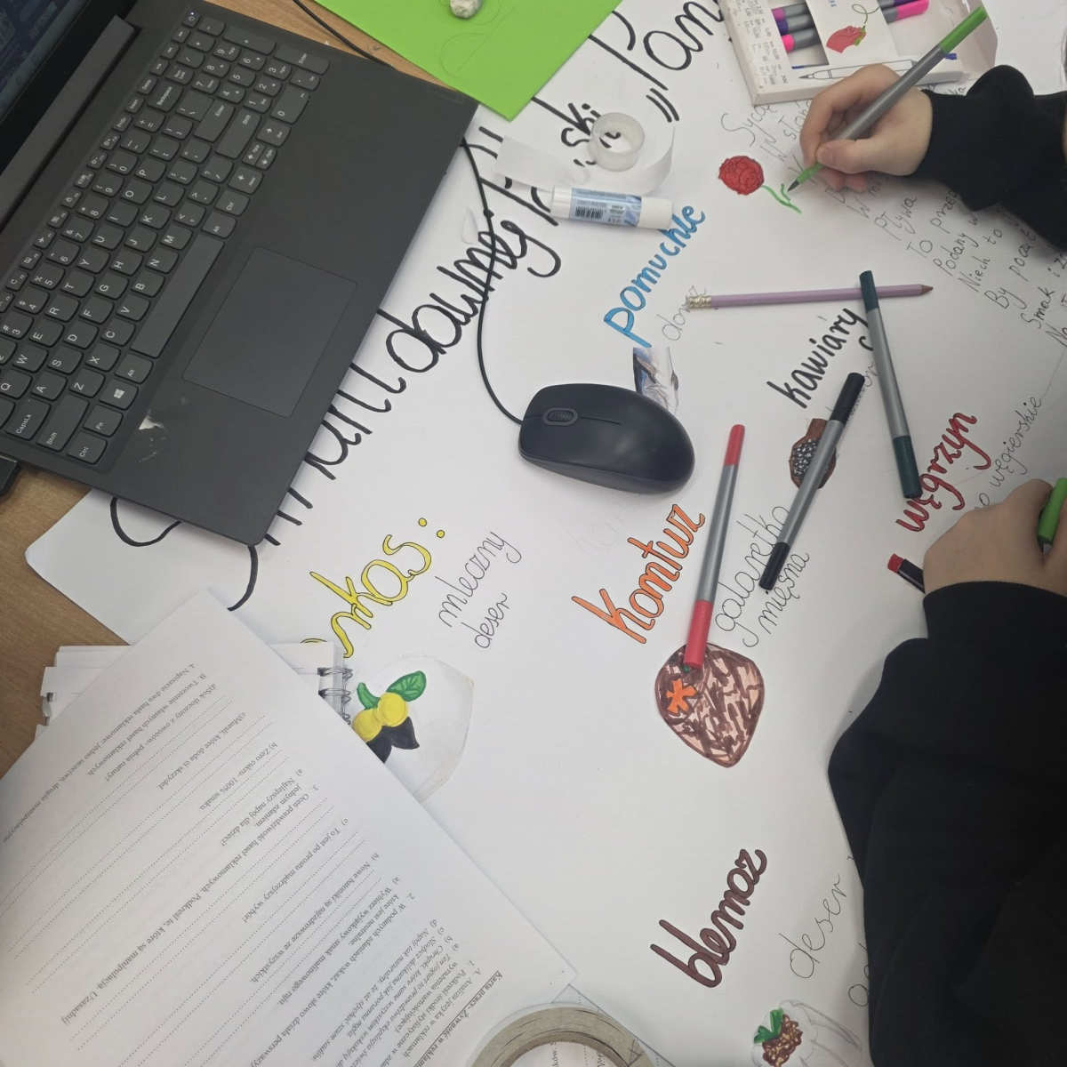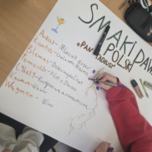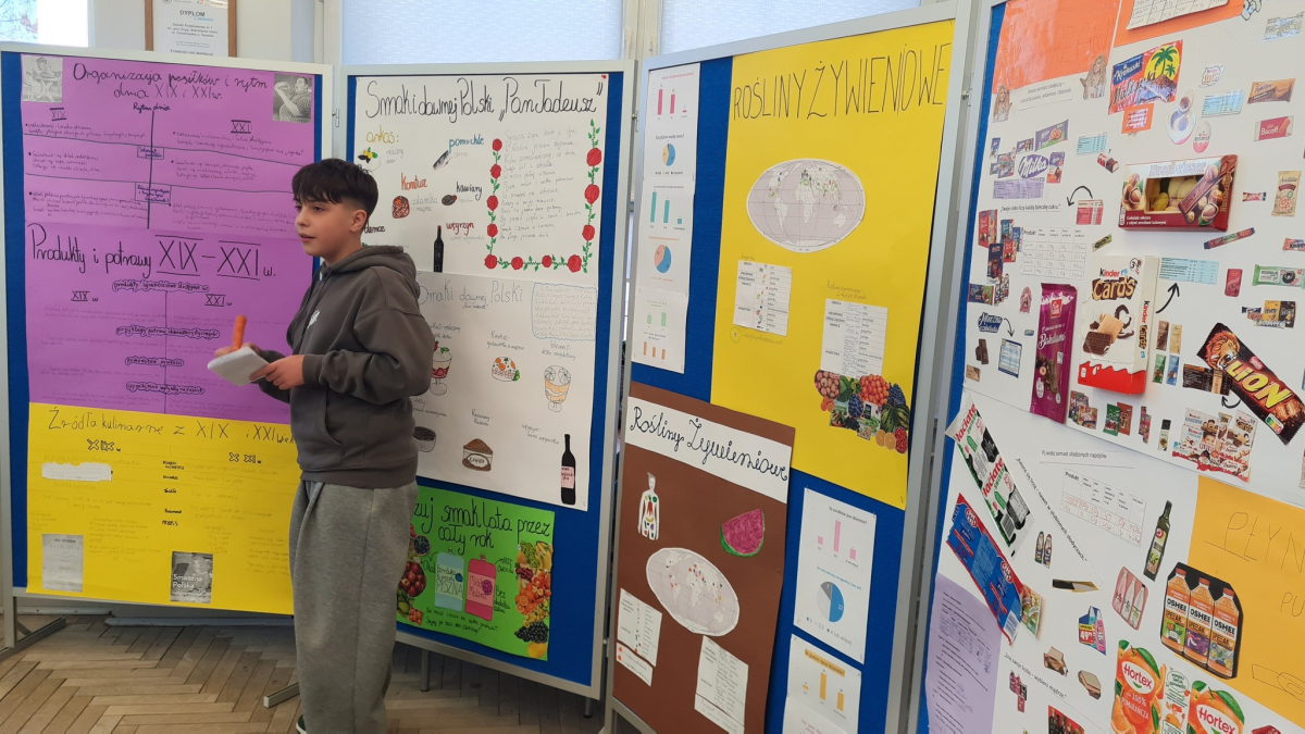 Uczniowie analizowali fragment „Pana Tadeusza” opisujący staropolską ucztę. Poznawali archaizmy oraz dawne nazwy potraw, a następnie omawiali tradycje kulinarne XVIII–XIX wieku. W zespołach przygotowali plakaty „Smaki w ‘Panu Tadeuszu’”, zestawiając ilustracje potraw, cytaty i objaśnienia językowe.