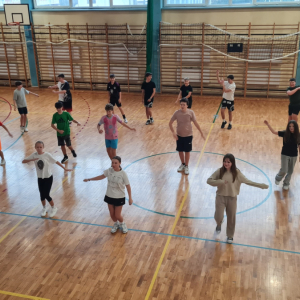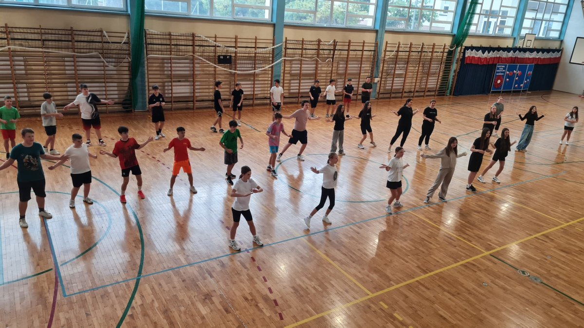 Podczas lekcji wychowania fizycznego omawiano wpływ aktywności ruchowej na zdrowie człowieka. Po rozgrzewce, ćwiczeniach ogólnorozwojowych i prostych układach tanecznych uczniowie wskazywali korzyści regularnego ruchu: większą odporność, energię, lepszą kondycję i samopoczucie. Zajęcia przebiegły w przyjaznej atmosferze, zachęcając do codziennej aktywności.
