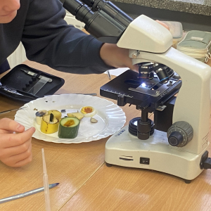 Podczas doświadczeń wykrywali obecność skrobi w wybranych produktach za pomocą płynu Lugola, a następnie oglądali ziarna skrobi pod mikroskopem, wykonując własne preparaty. Rozmawiano o dodatkach do żywności i ich wpływie na zdrowie.