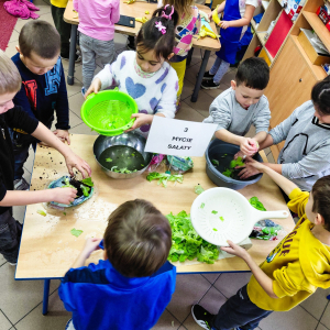 Dzień pierwszy – Piramida zdrowia z żywych produktów. Pierwszego dnia uczniowie poznali podstawy zdrowego żywienia poprzez pracę z „żywymi produktami” – świeżymi warzywami, owocami, ziarnami i ziołami. Podczas zajęć wspólnie stworzyli piramidę zdrowia, omawiając, dlaczego naturalne i mało przetworzone produkty są kluczowe dla energii, odporności i dobrego samopoczucia. To początek tygodnia pełnego świadomych wyborów i zdrowych nawyków.