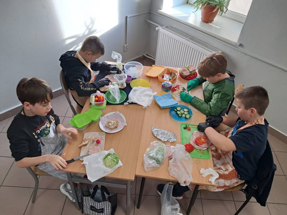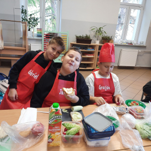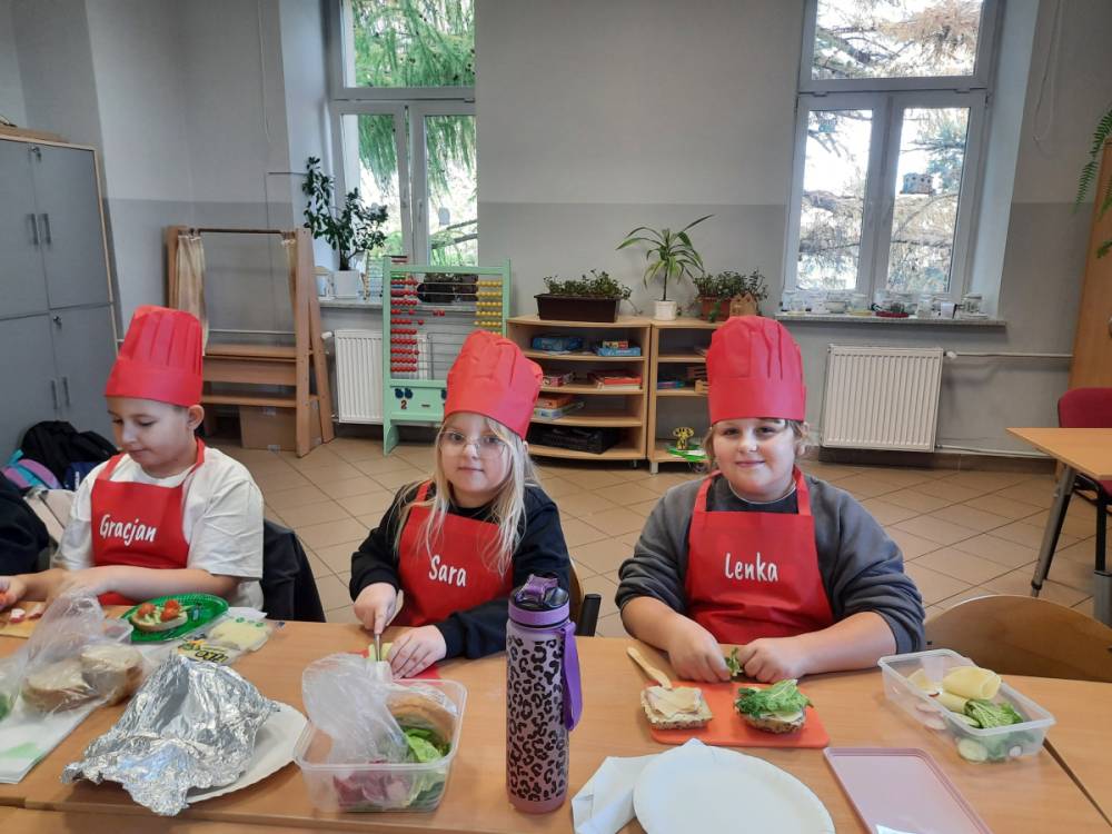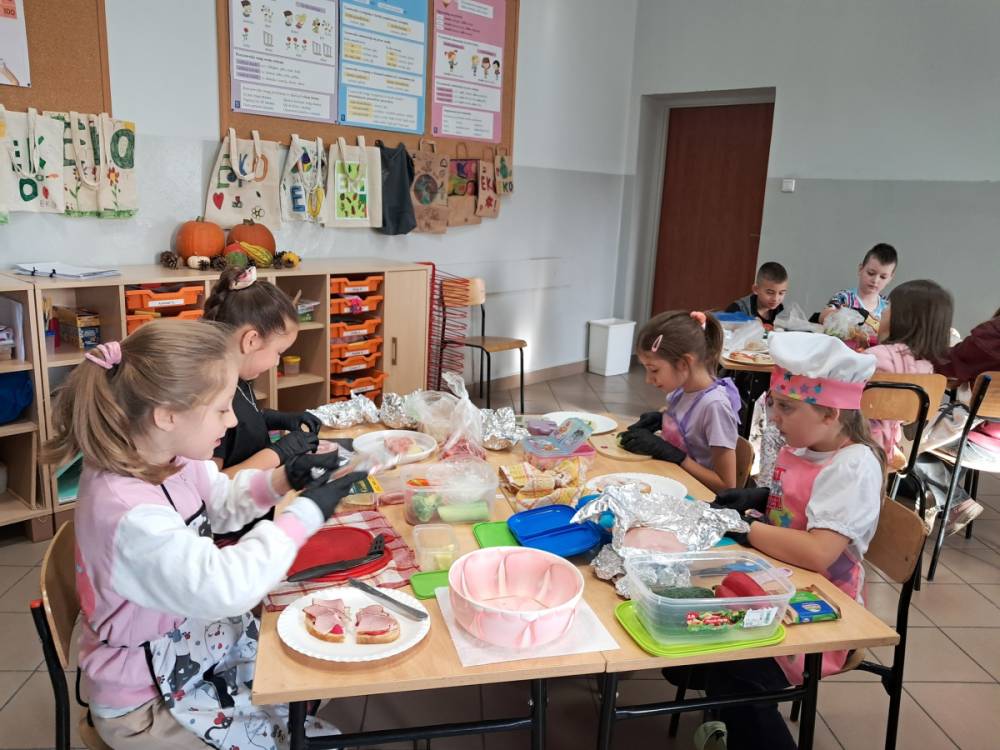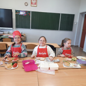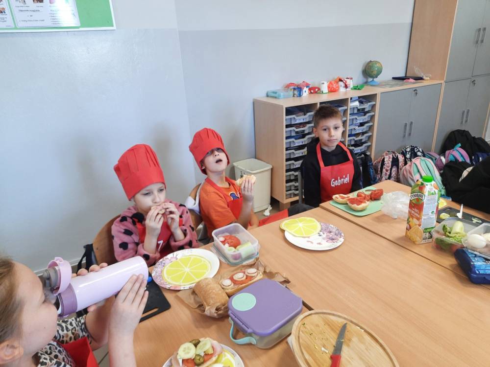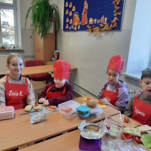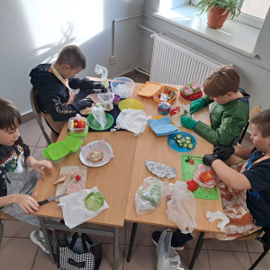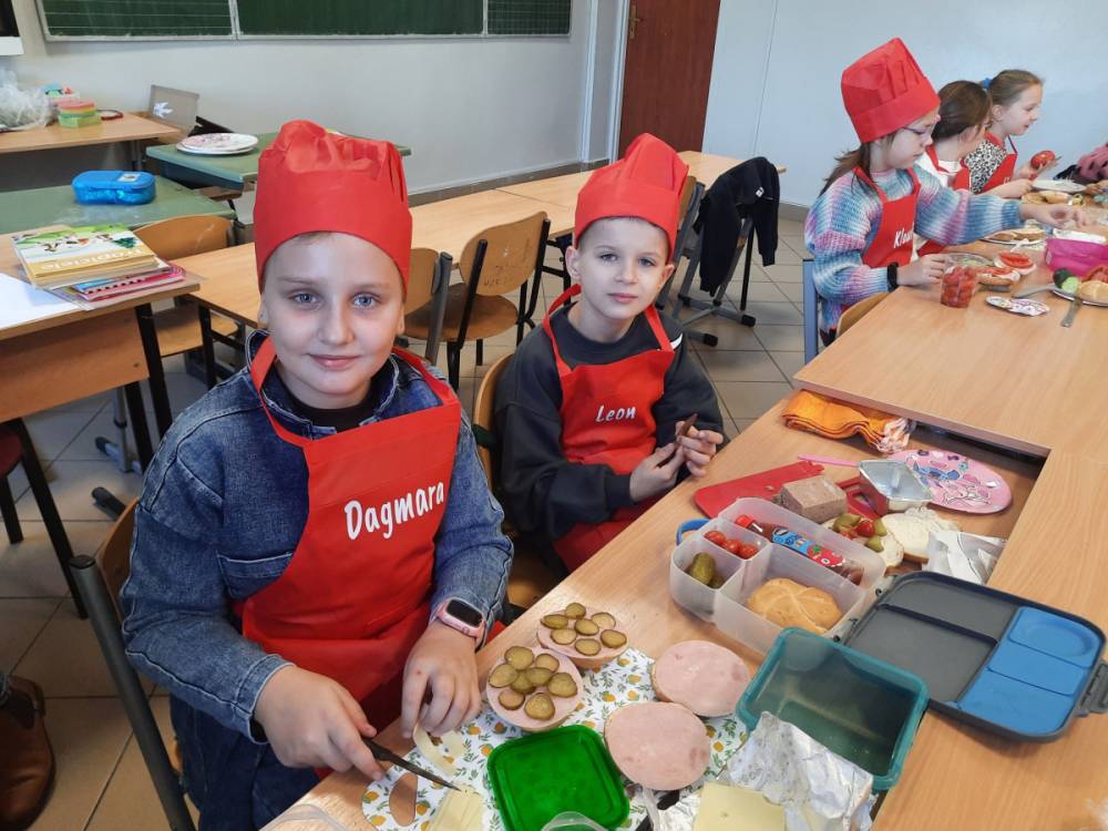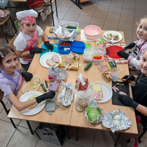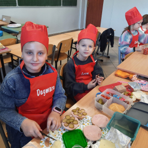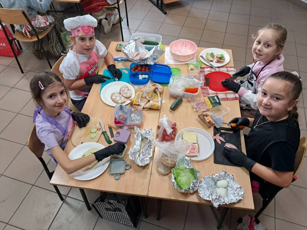 Dzieci postawiły na proste, a jednocześnie atrakcyjne i wartościowe propozycje. Przygotowały kanapki z pełnoziarnistego pieczywa z dodatkiem chudego białka i świeżych warzyw. Posiłek był urozmaicony i zawierał porcję warzyw oraz owoców, będących źródłem witamin, minerałów i błonnika.