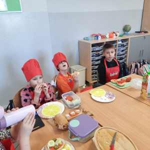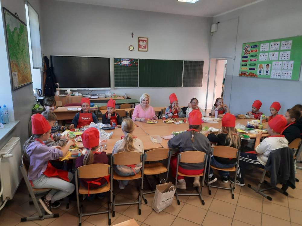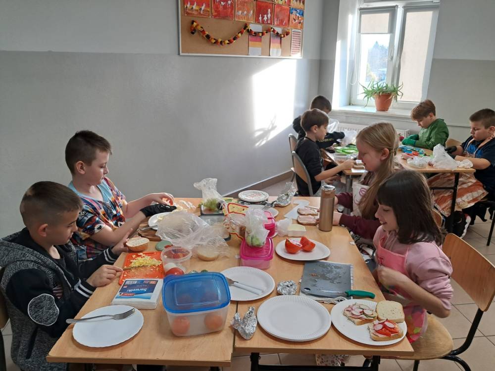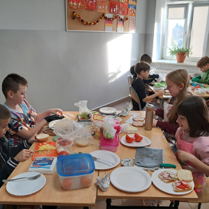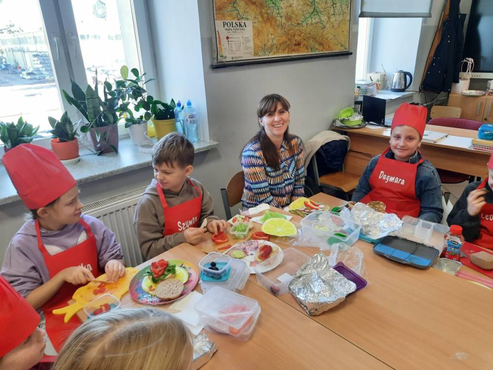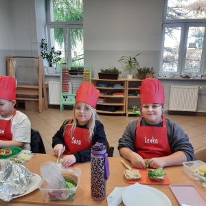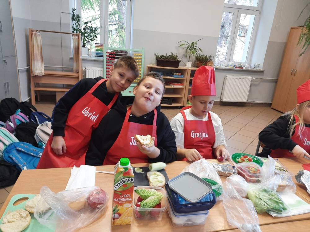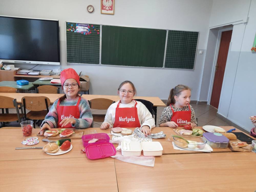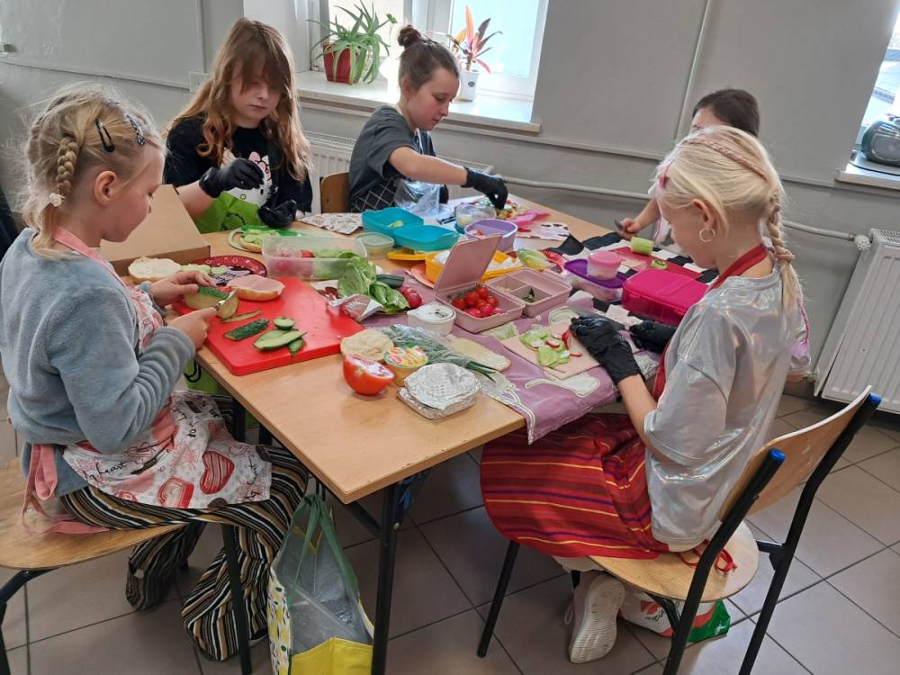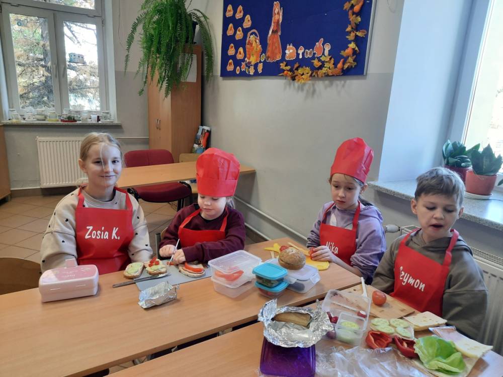Dzieci postawiły na proste, a jednocześnie atrakcyjne i wartościowe propozycje. Przygotowały kanapki z pełnoziarnistego pieczywa z dodatkiem chudego białka i świeżych warzyw. Posiłek był urozmaicony i zawierał porcję warzyw oraz owoców, będących źródłem witamin, minerałów i błonnika.